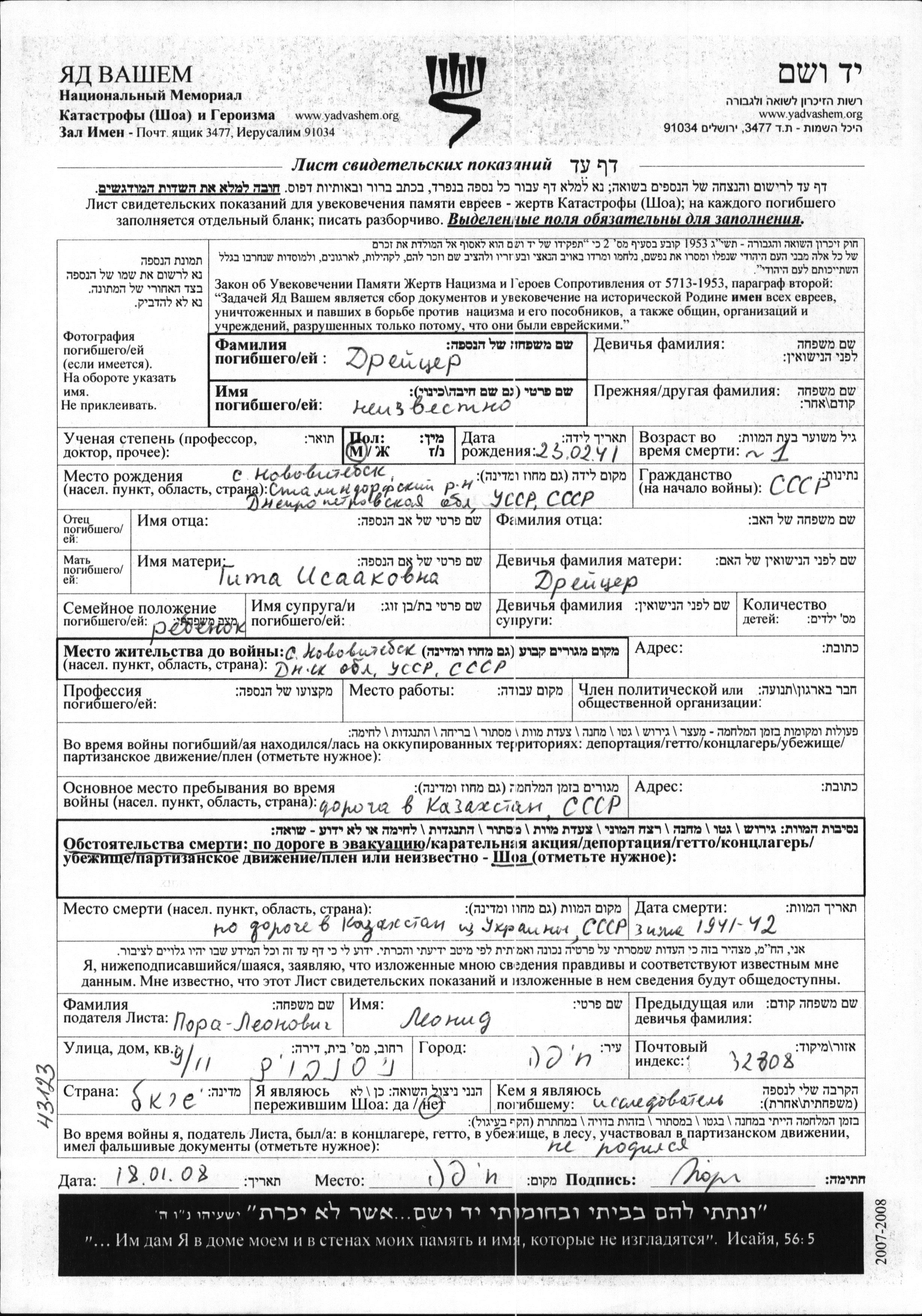 Search by last name of the submitter of the Page of Testimony, including diminutives or nicknames