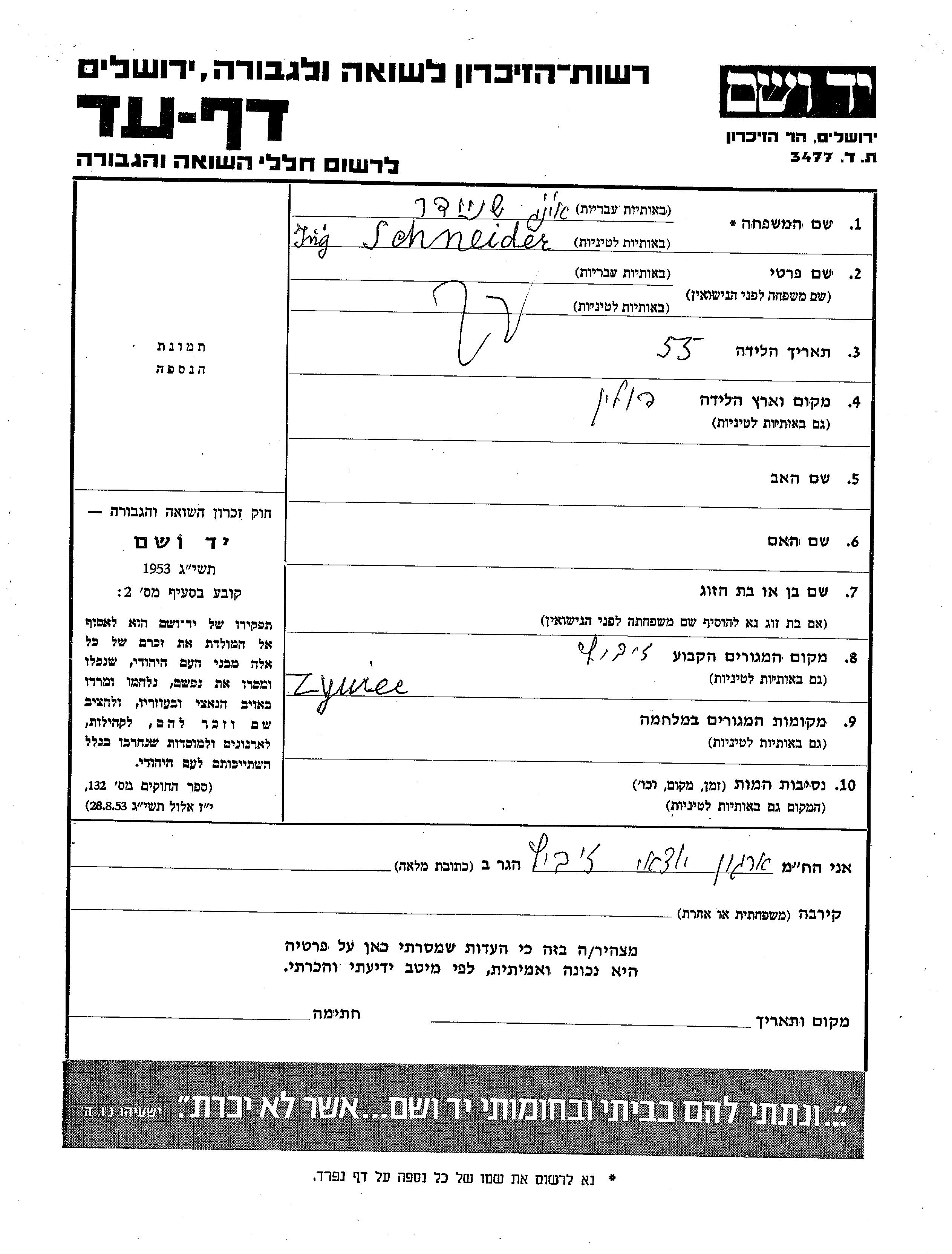 Schneider First name unknown Zywiec, Poland Page of Testimony