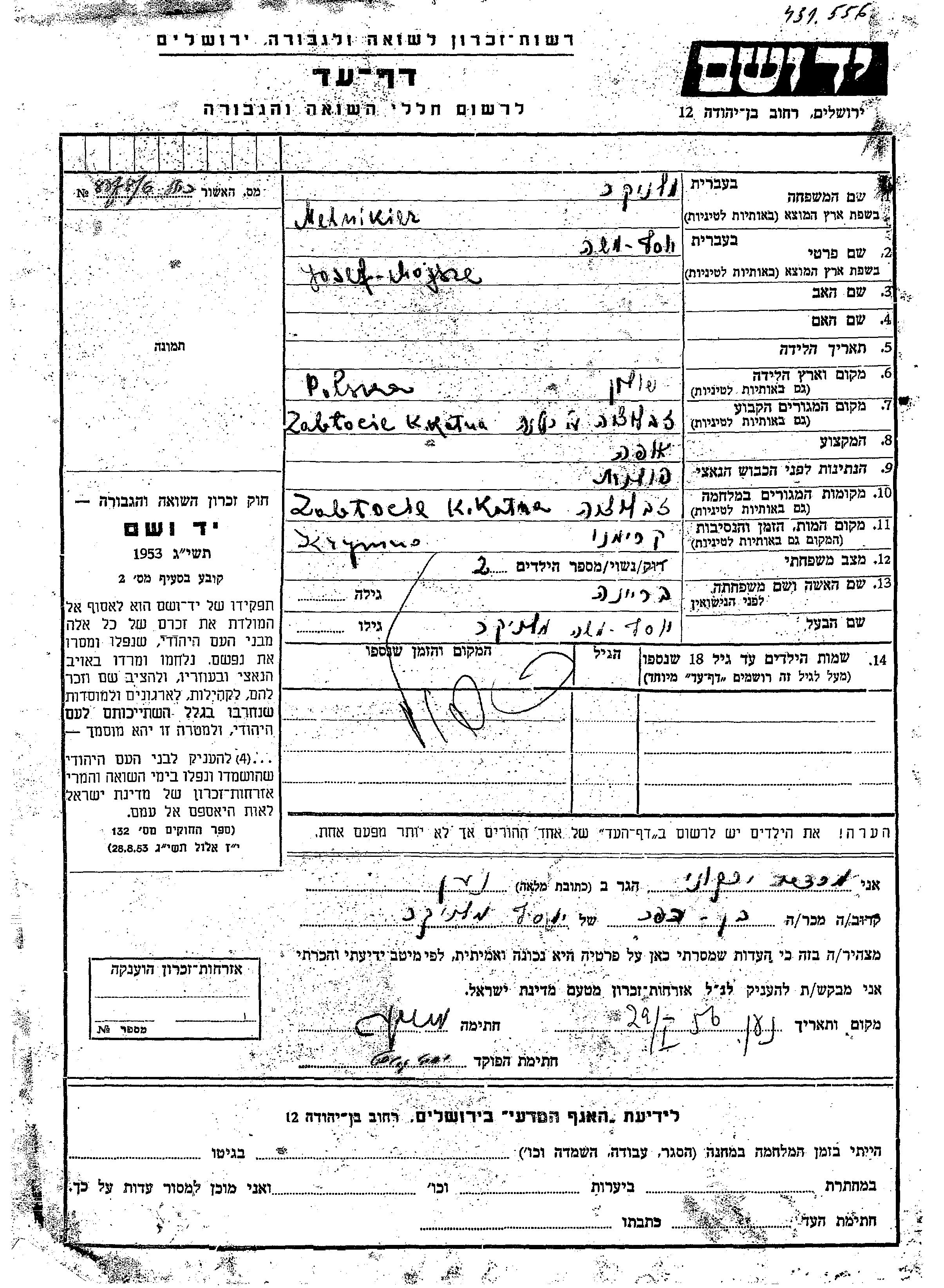 Melnikier Josef Mojsze Zablocie, Poland Page of Testimony