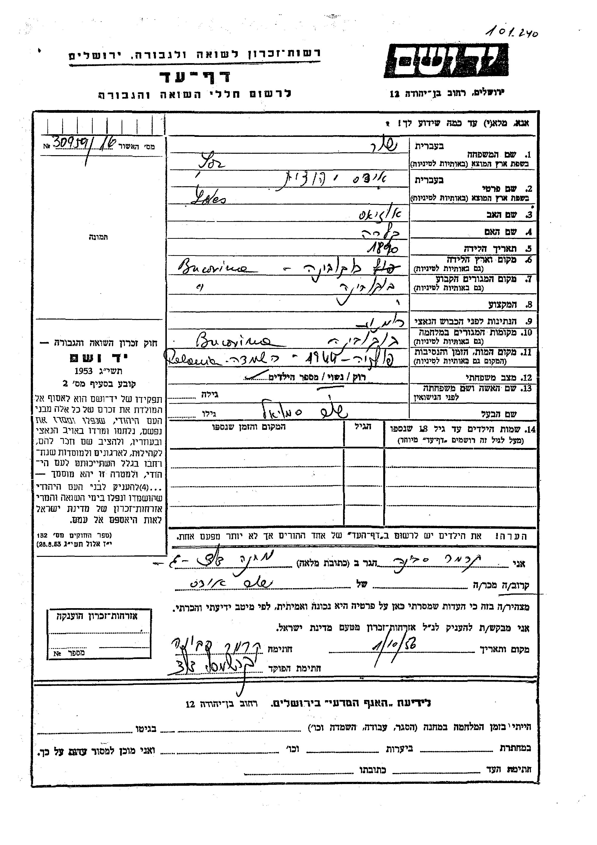 Yad Vashem - Pages of Testimony Names Memorial Collection