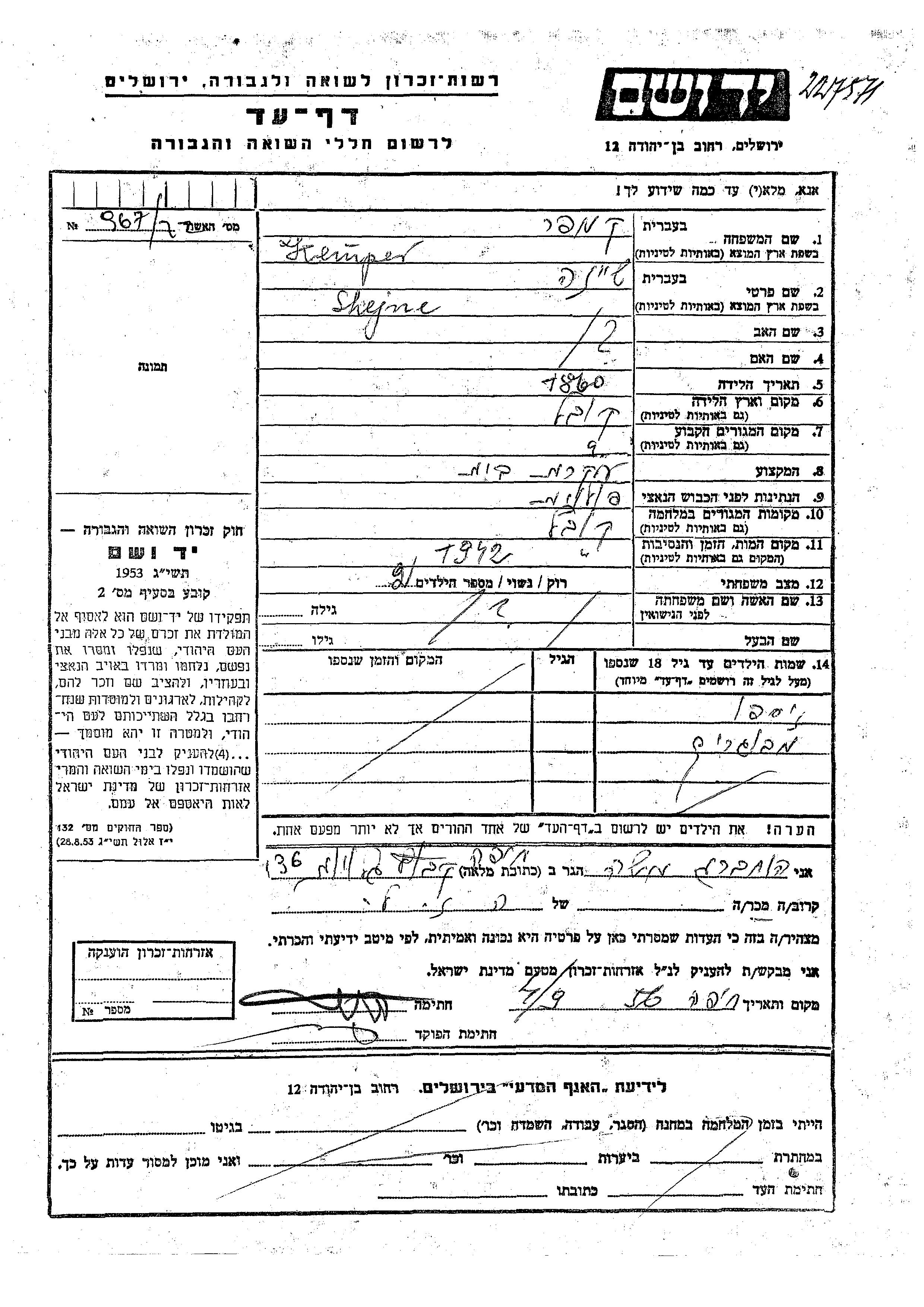 Yad Vashem - Pages of Testimony Names Memorial Collection