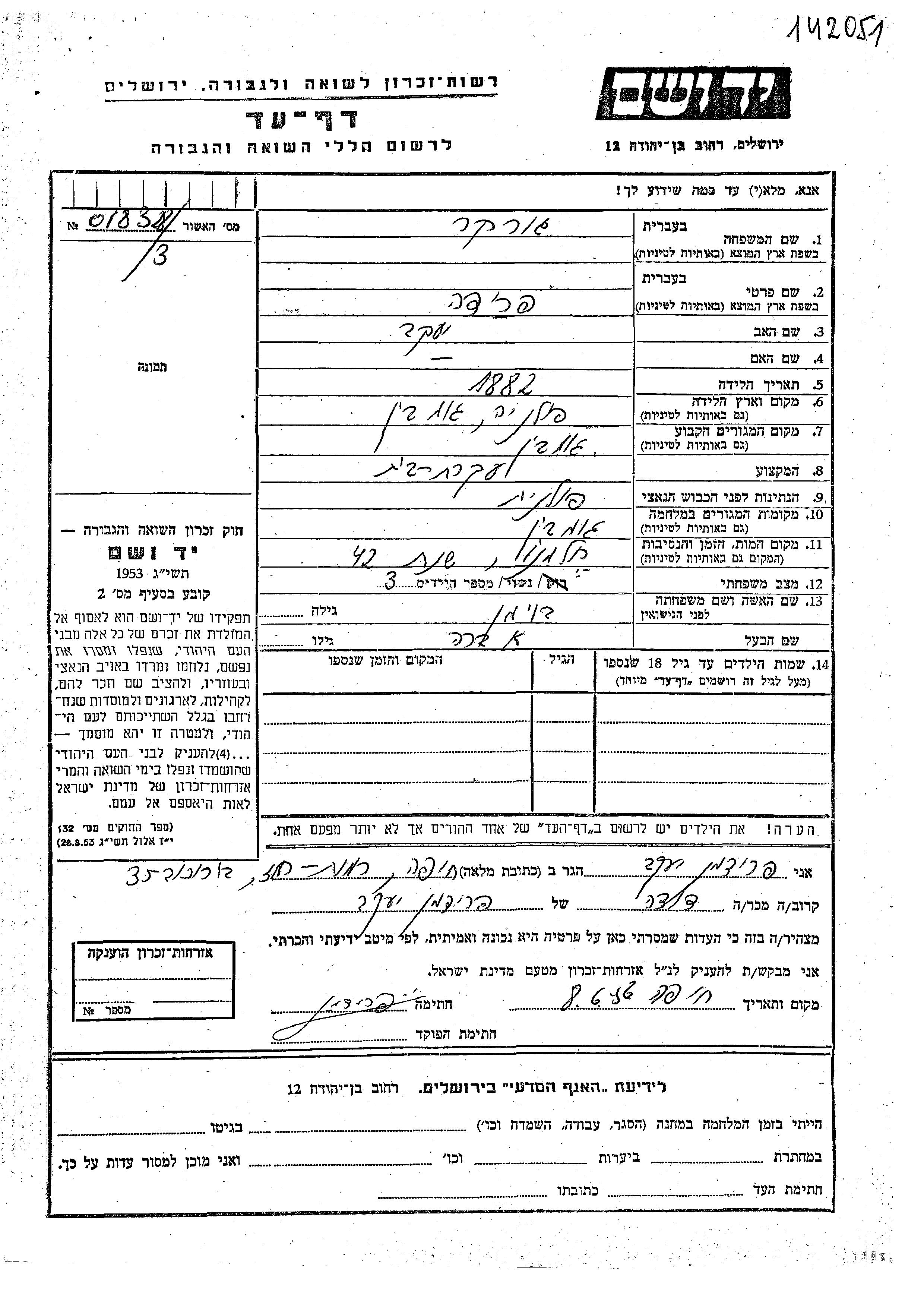 Frida Gurker nee Boiman was born in Gabin, Poland, 1882 to Yaakov. She was a housewife and married to Abra. Prior to WWII she lived in Gabin, Poland. During the war she was in Gabin, Poland. Frida was murdered in the Shoah. Place of death: Chelmno, Poland, 1942.