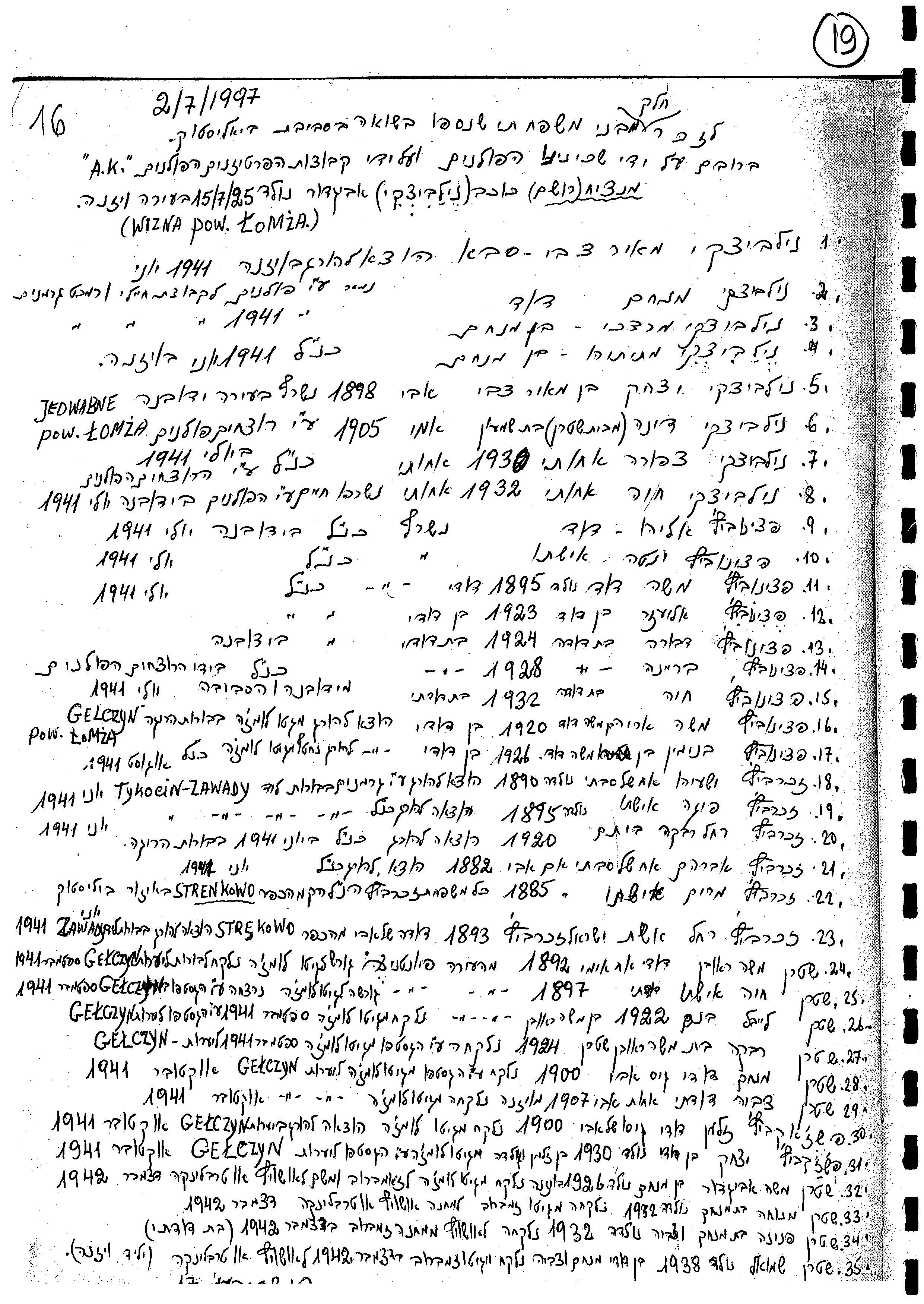 Shtern Shmuel 1938 Wizna, Poland List of persecuted persons