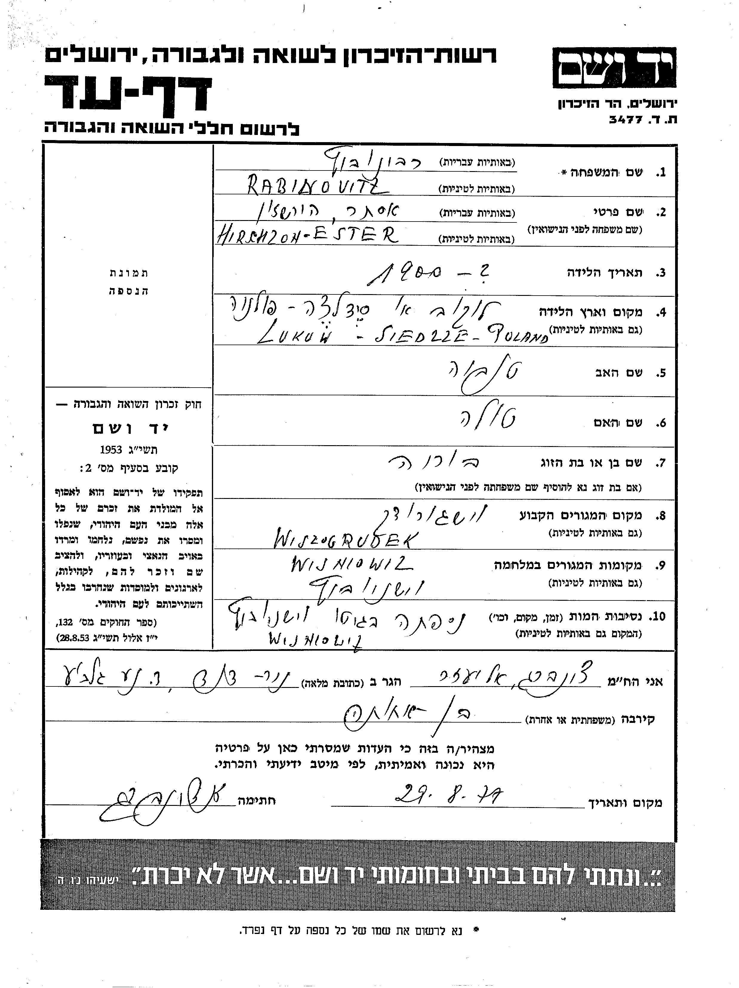 Rabinovitz Ester 1900 Wyszogrodek, Poland Page of Testimony