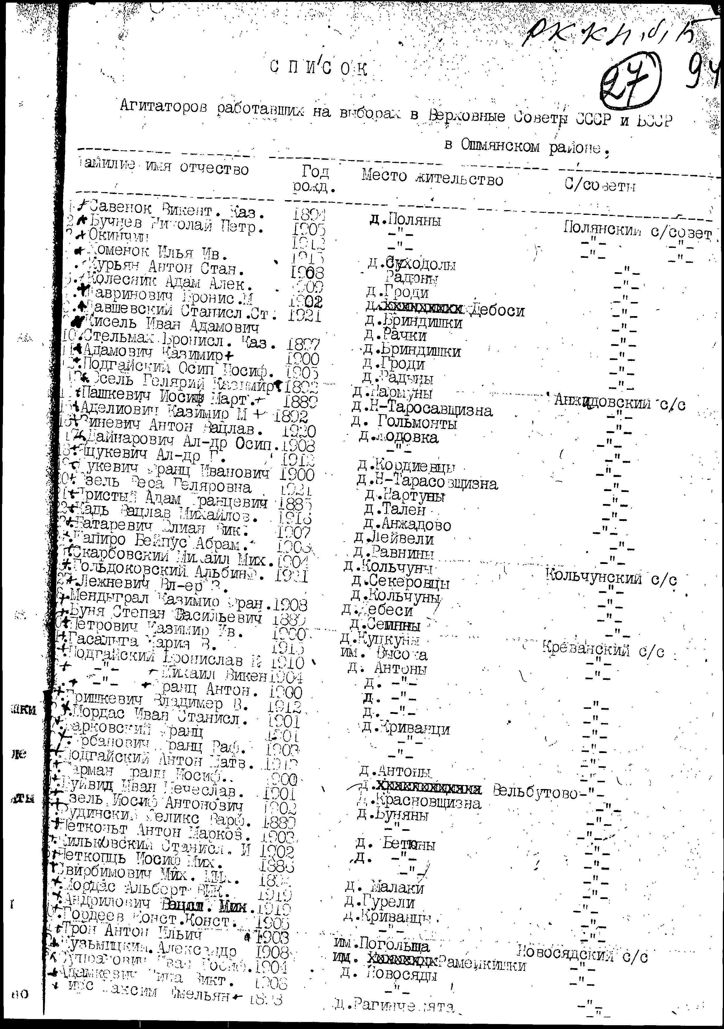 List of propagandists from the Oszmiana district, 1940
