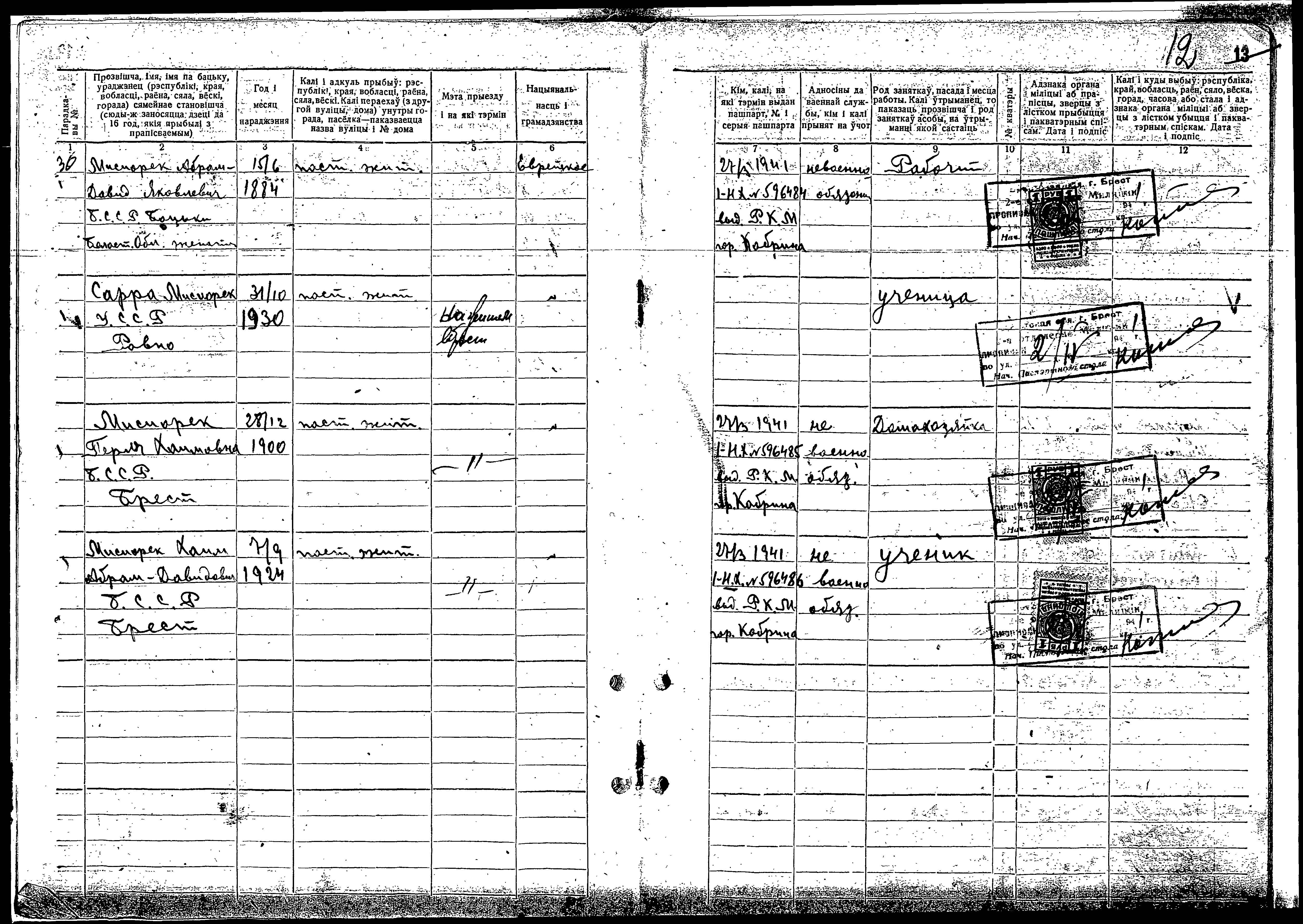 Misiorek Abram David 1884 Brest, Poland List of persecuted persons