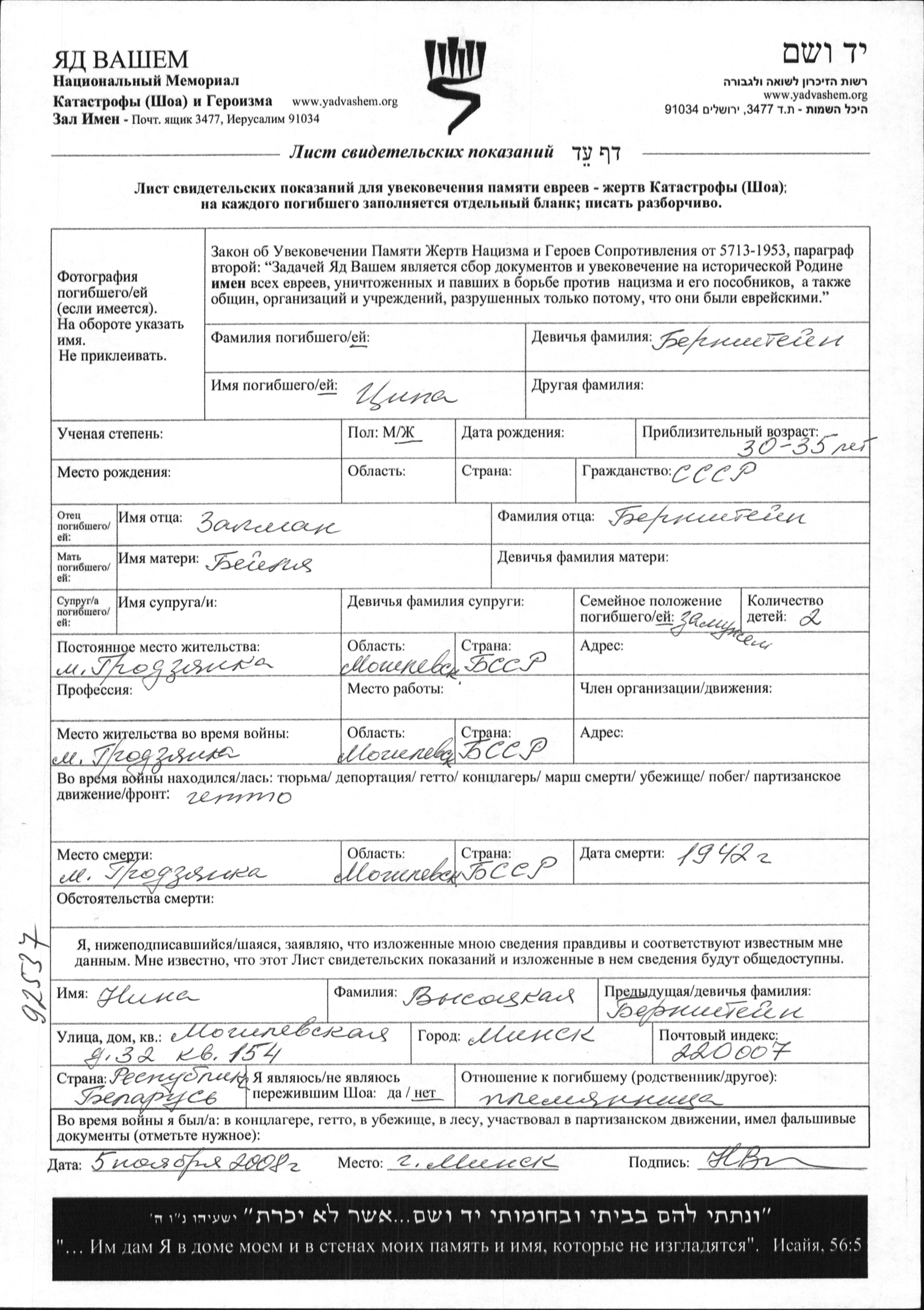 Yad Vashem - Pages of Testimony Names Memorial Collection
