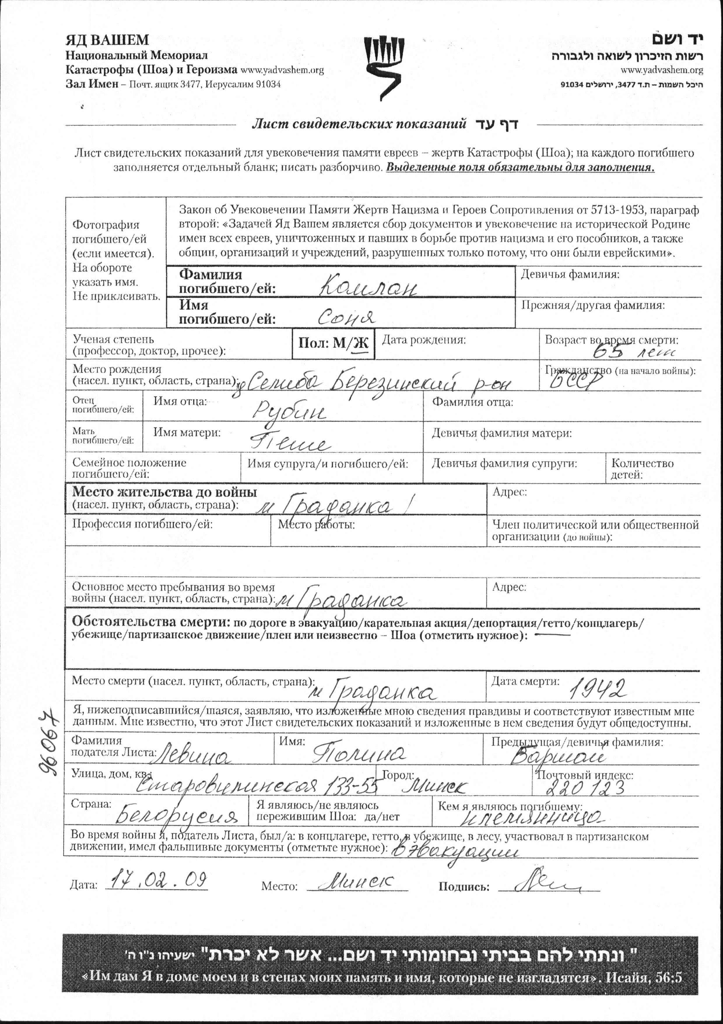 Search by last name of the submitter of the Page of Testimony, including diminutives or nicknames