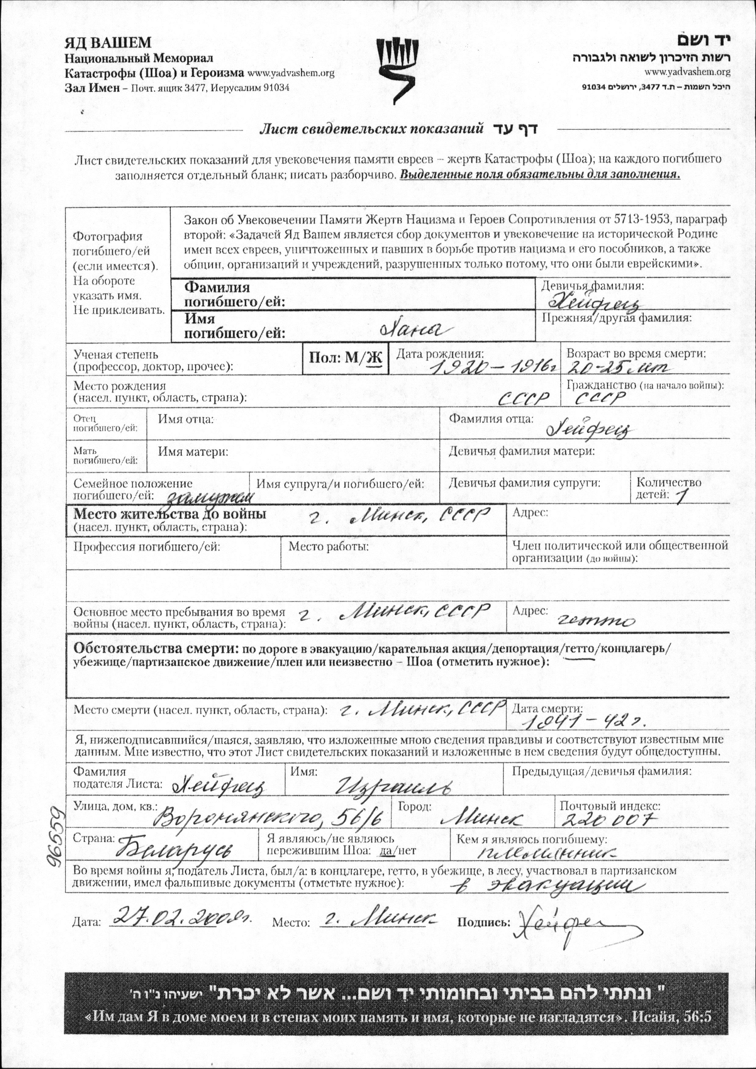 Yad Vashem - Pages of Testimony Names Memorial Collection