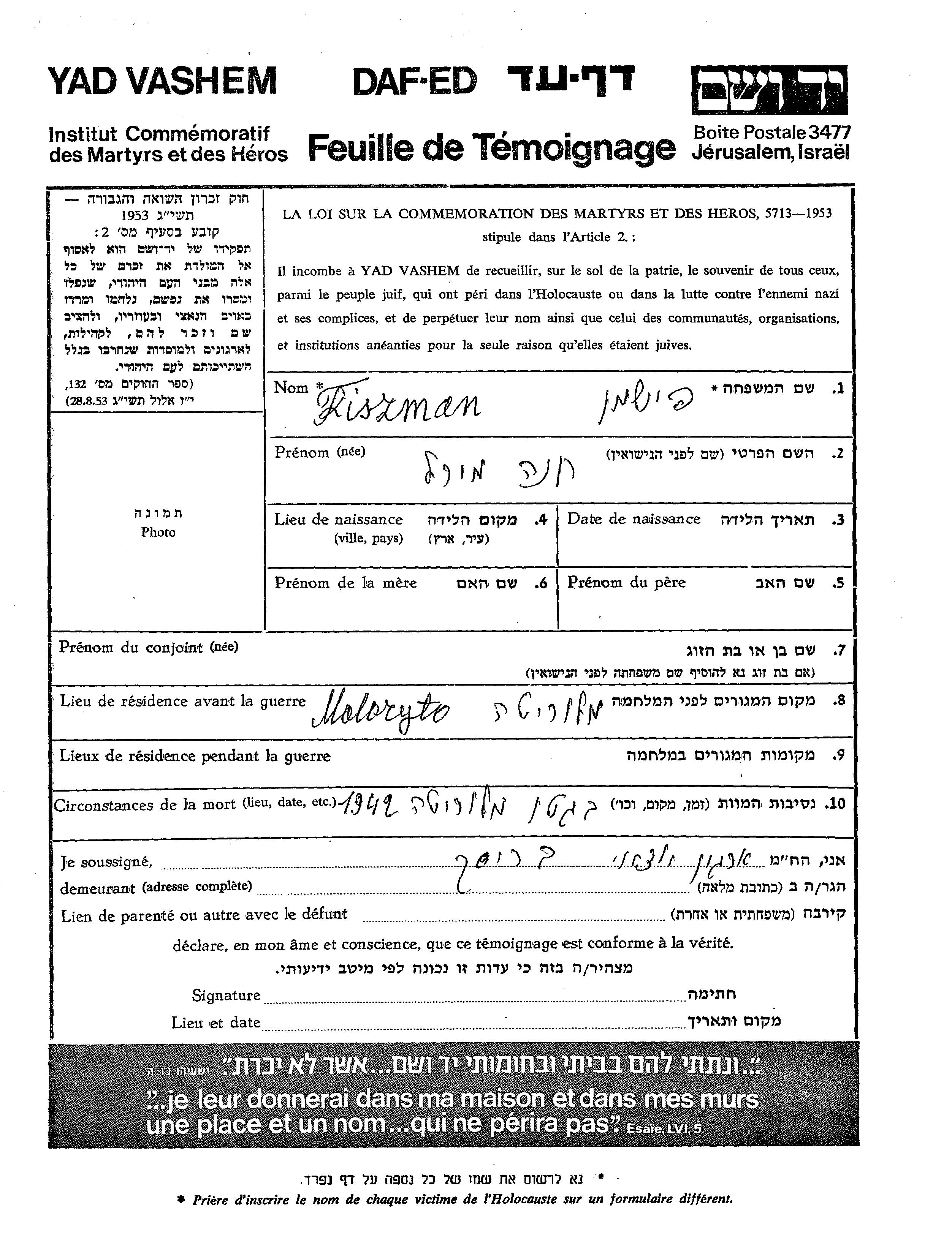 Yad Vashem - Pages of Testimony Names Memorial Collection