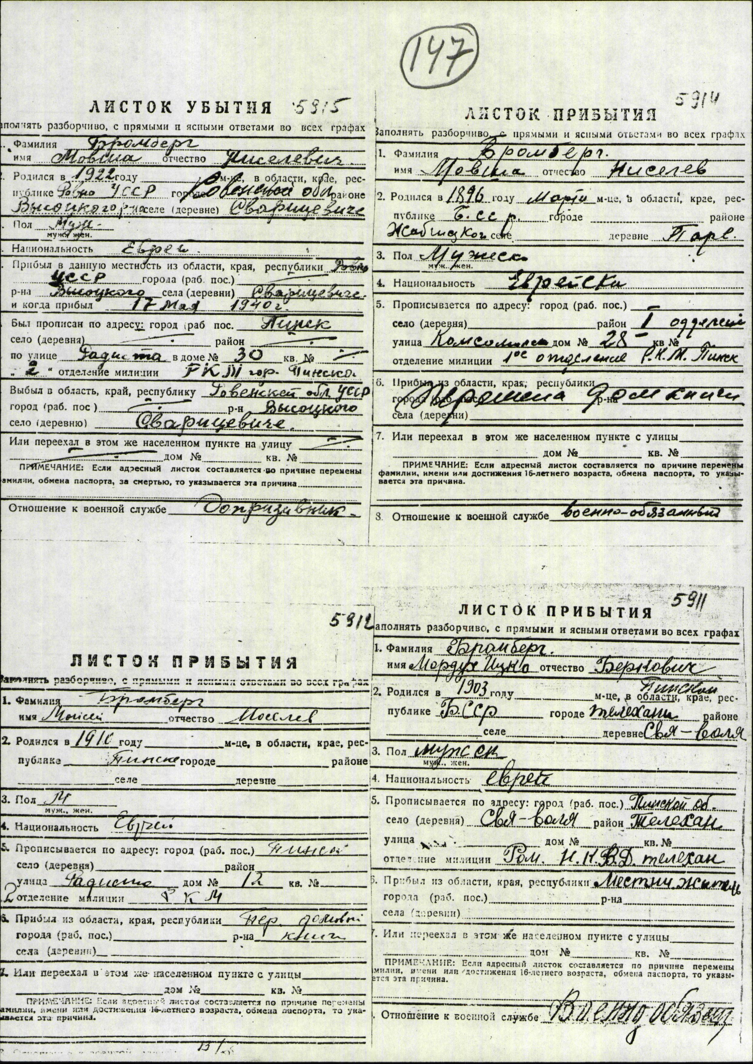 Brayna Bromberg was born in Svyataya Volya, Poland, 1939 to Mordukh Itzko. She was baby. Prior to WWII she lived in Svyataya Volya, Poland.
