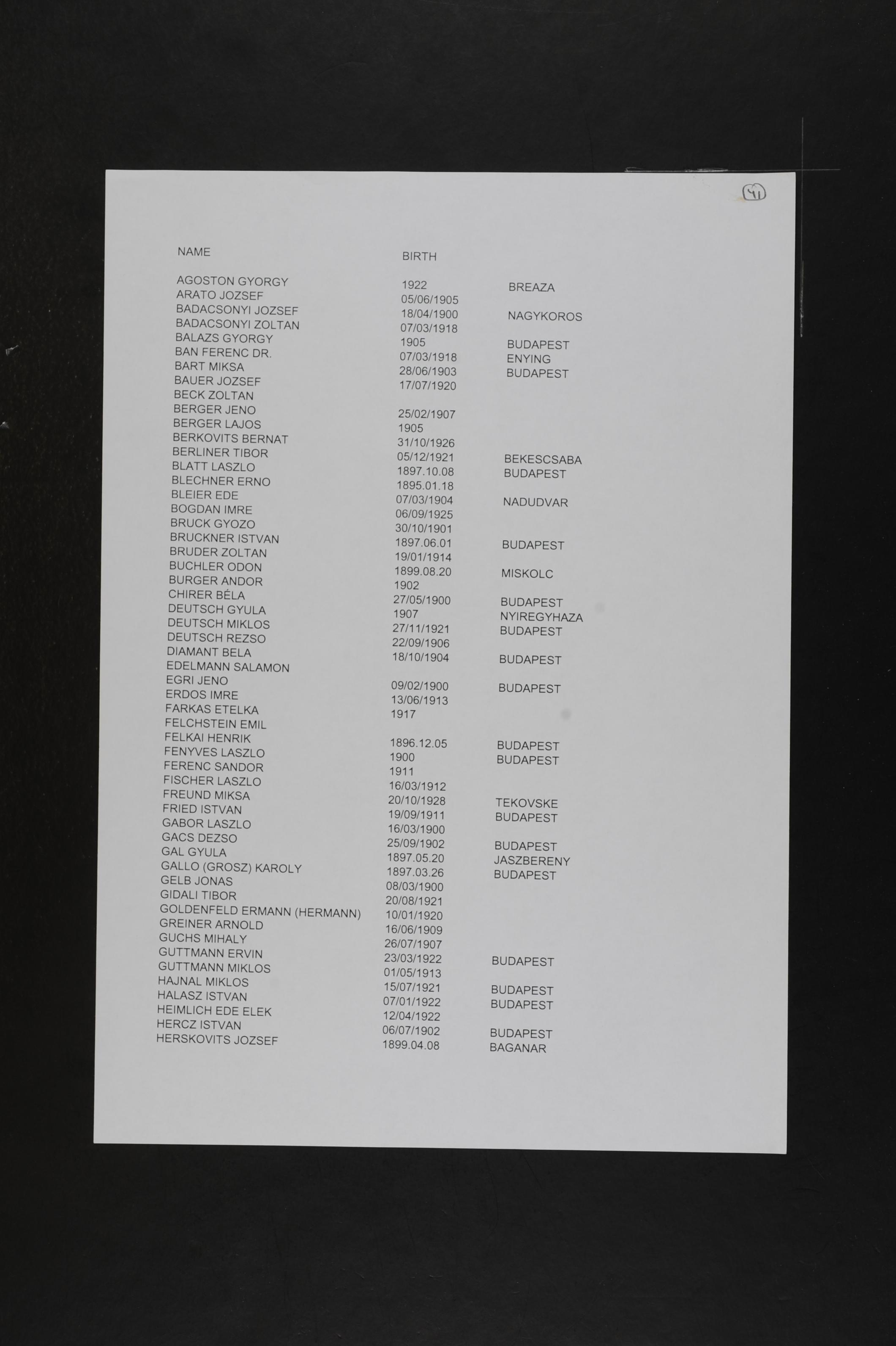 Berger Lajos 1905 List of persecuted persons