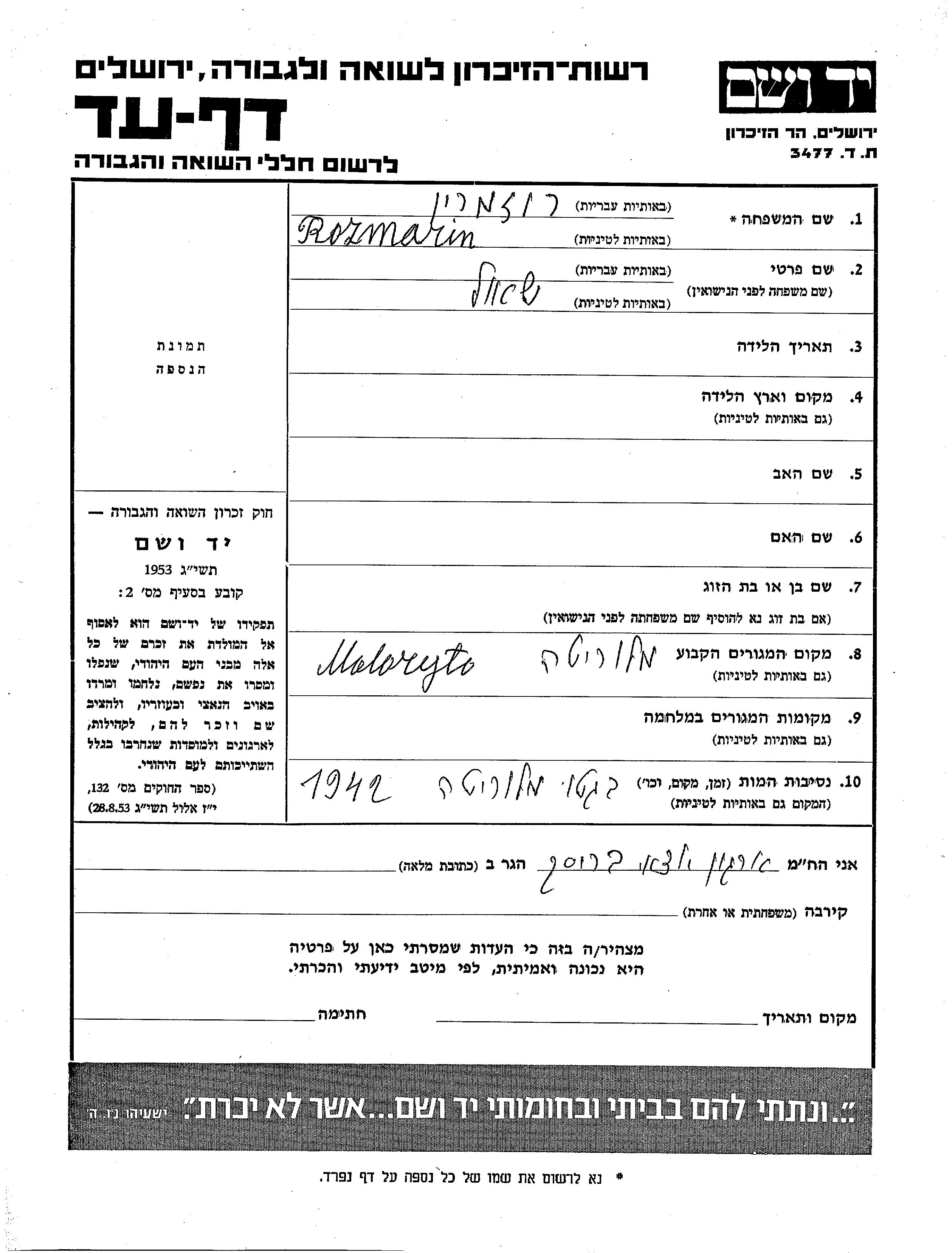 Rozmarin Shaul Maloryta, Poland Page of Testimony