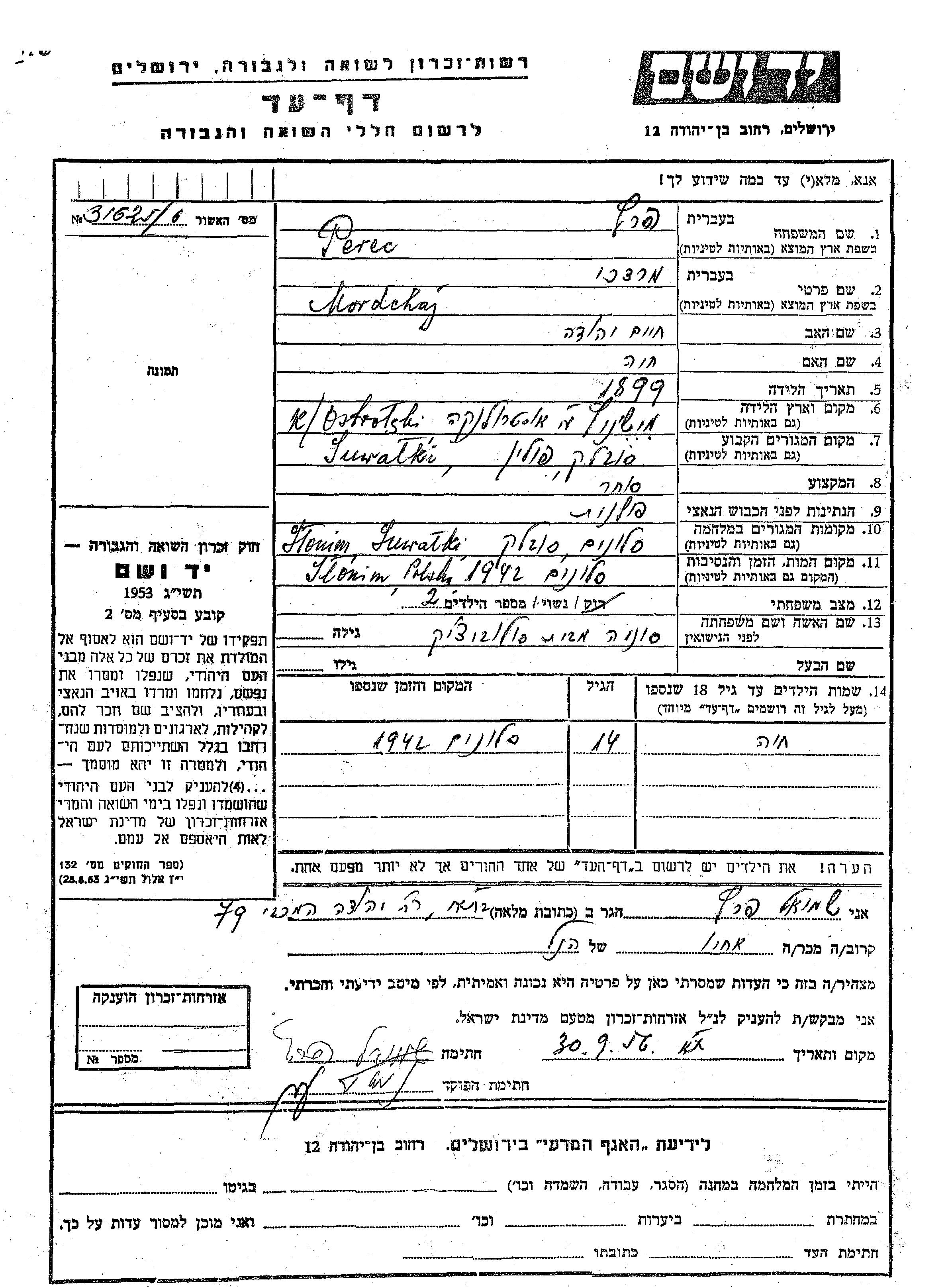 Yad Vashem - Pages of Testimony Names Memorial Collection