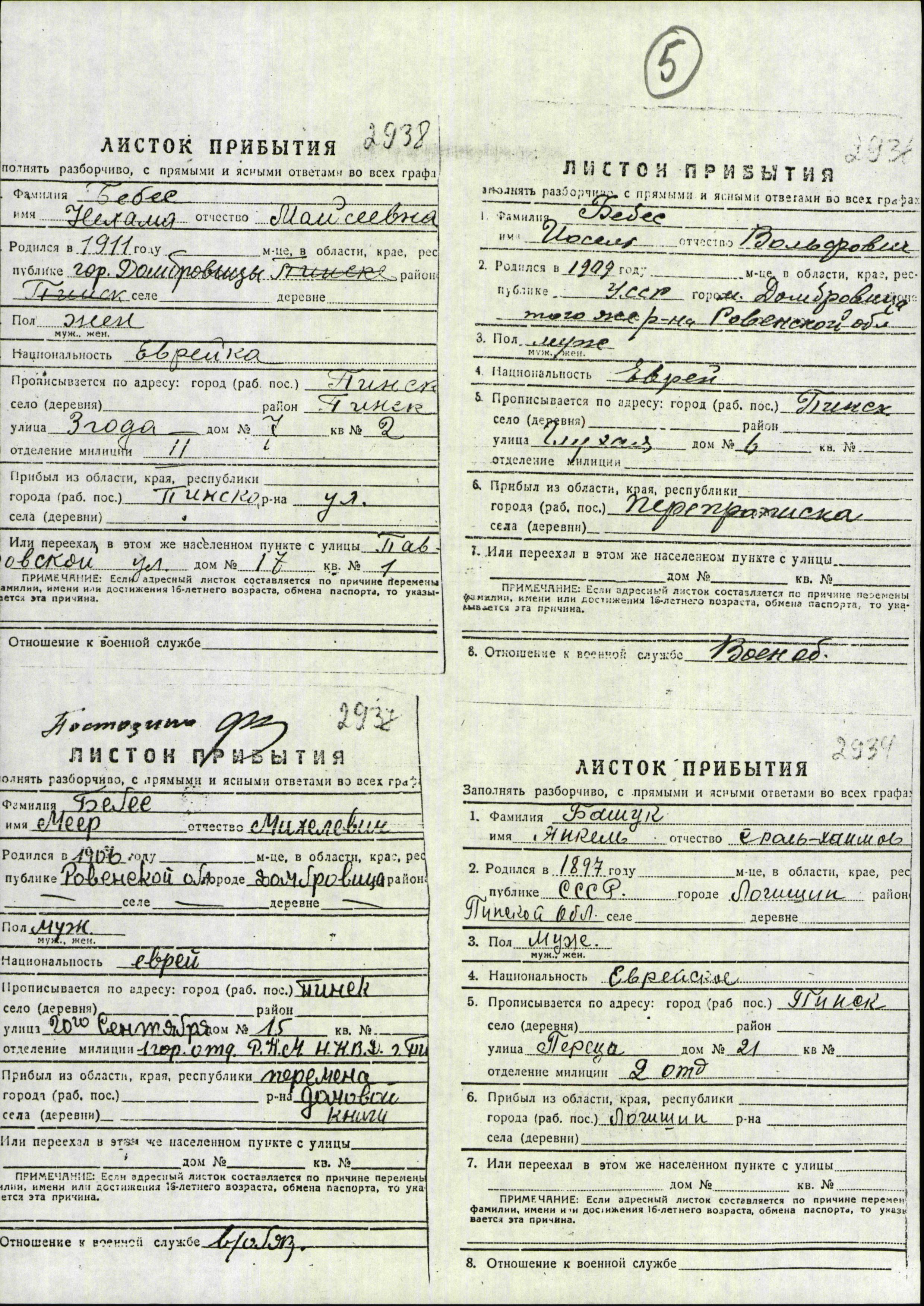 Rivka Bashuk was born in Pinsk, Poland, 1930 to Yankel. She was child. Prior to WWII she lived in Logishin, Poland.