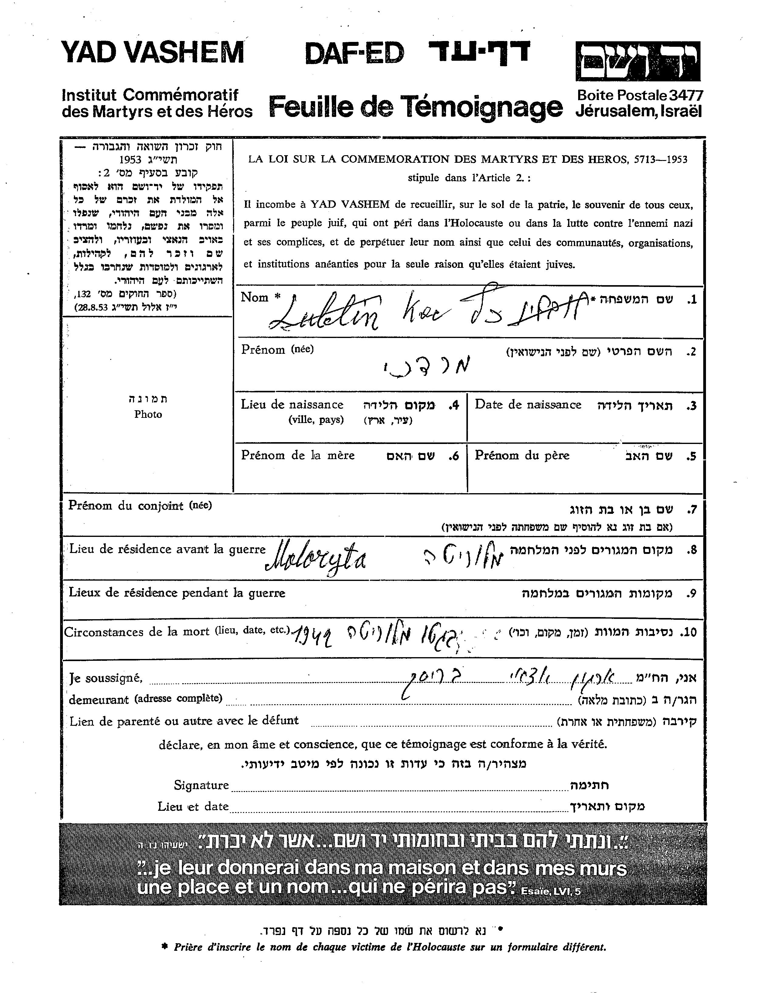 Yad Vashem - Pages of Testimony Names Memorial Collection