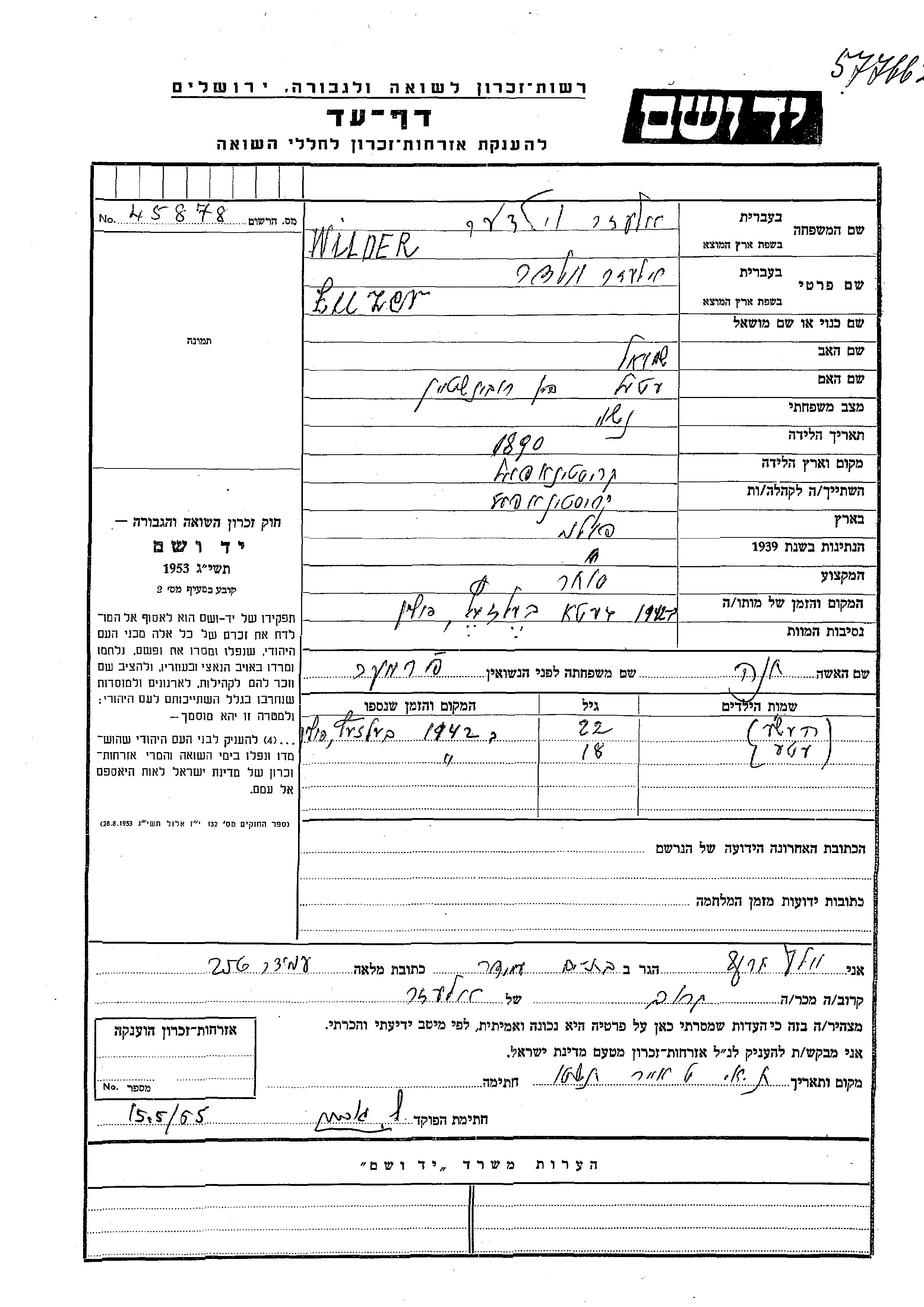 Yad Vashem - Pages of Testimony Names Memorial Collection