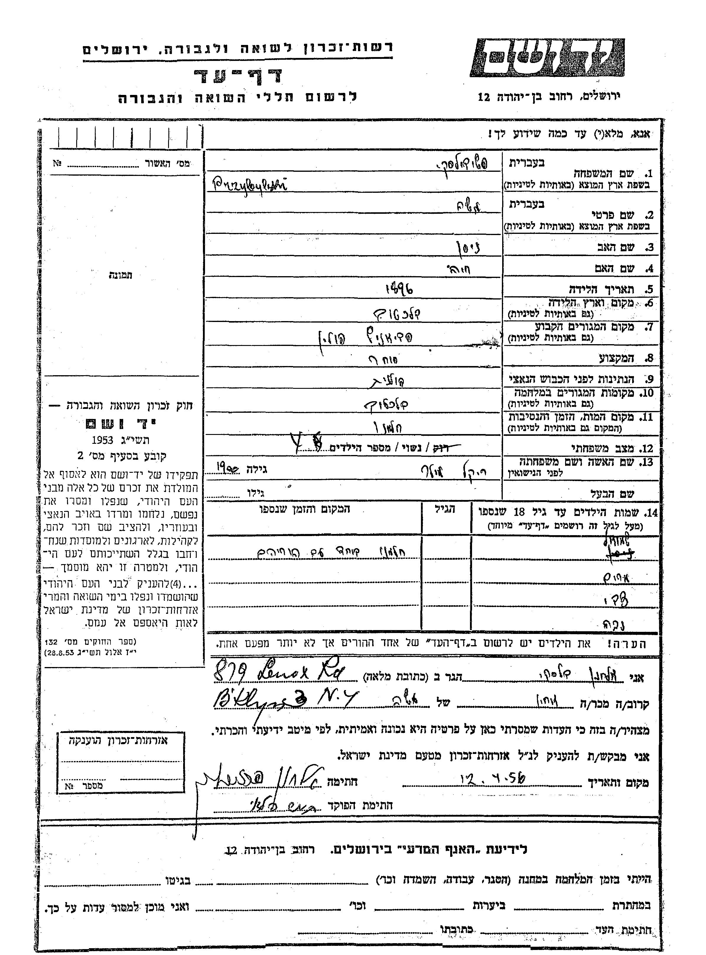 Yad Vashem - Pages of Testimony Names Memorial Collection