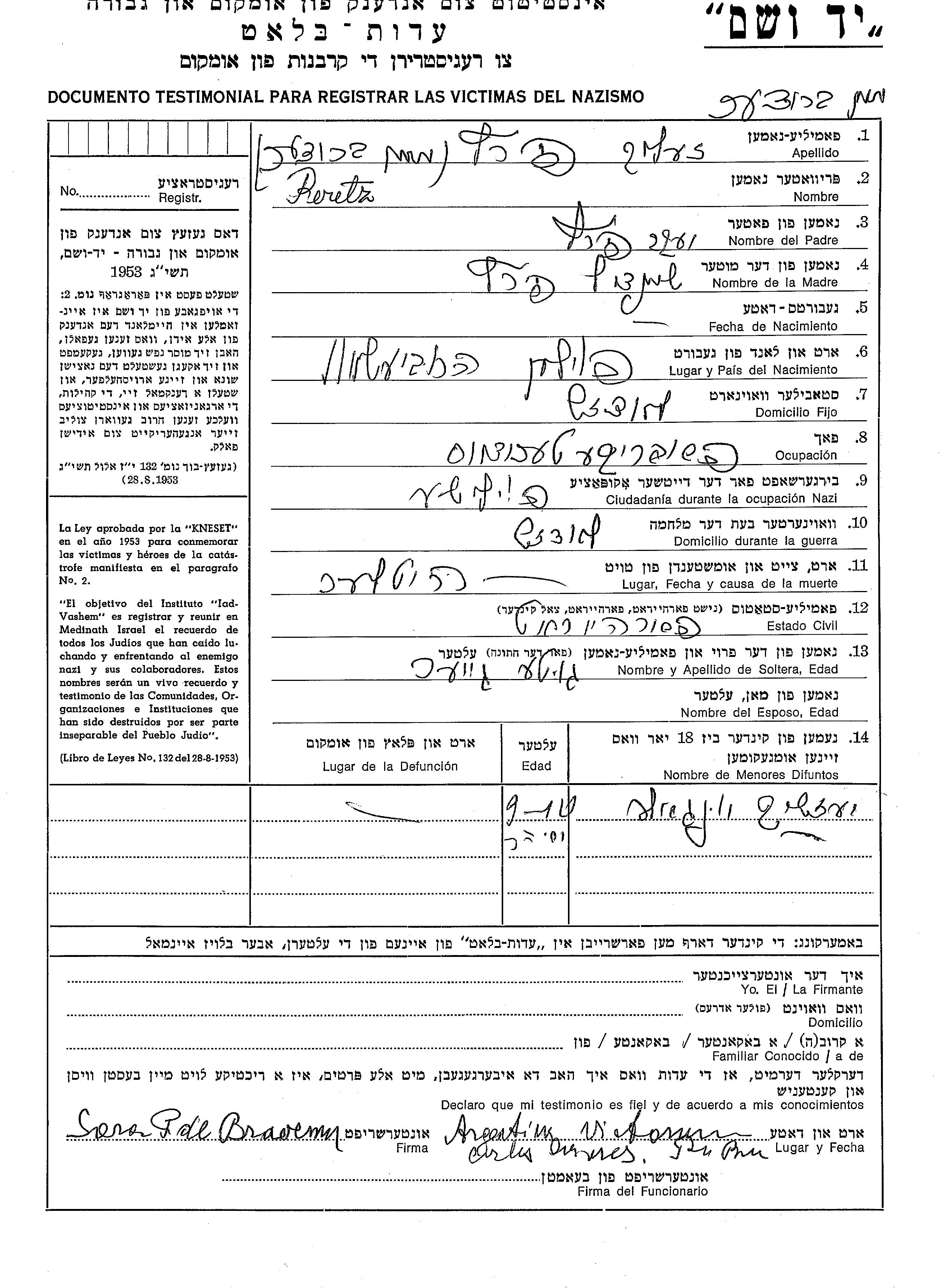 Yad Vashem - Pages of Testimony Names Memorial Collection