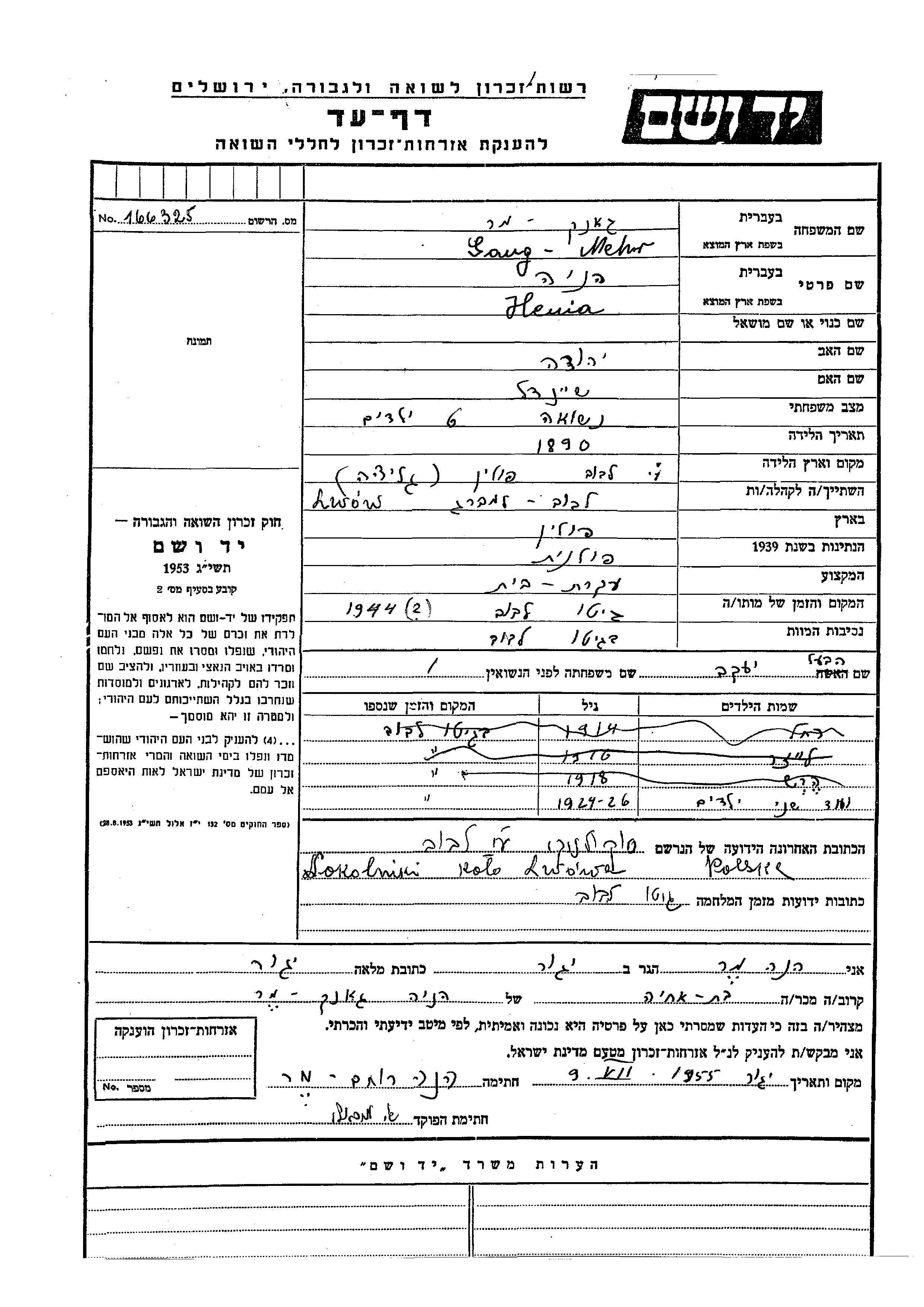 Mehr Gank First name unknown 1926 Sokolniki, Poland Page of Testimony