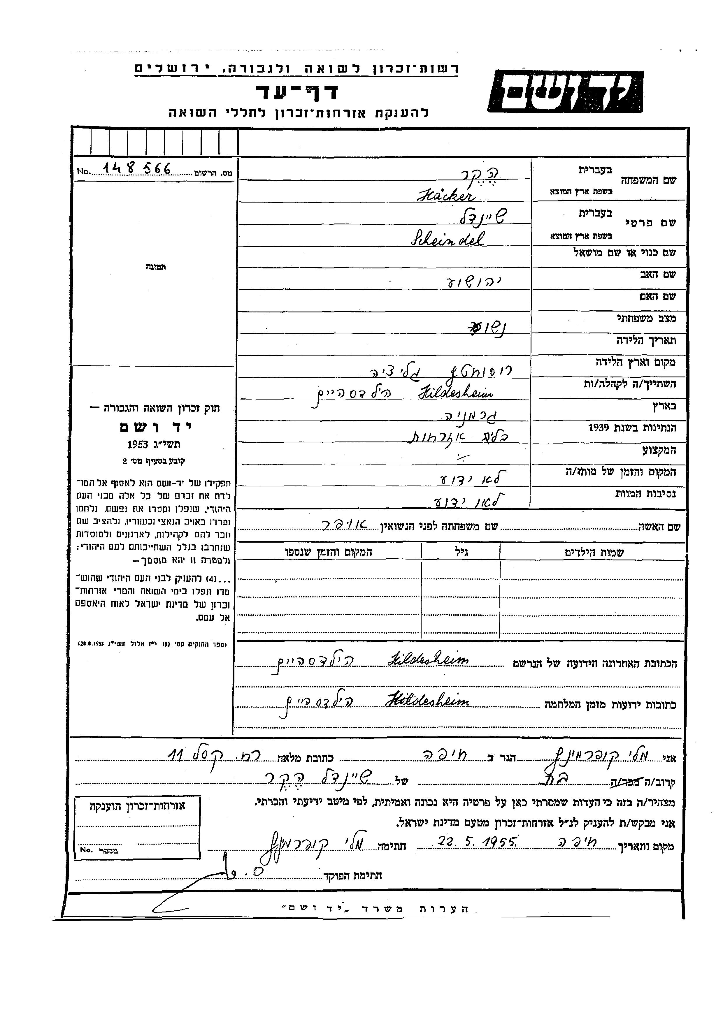 Hacker Scheindel Hildesheim, Germany Page of Testimony