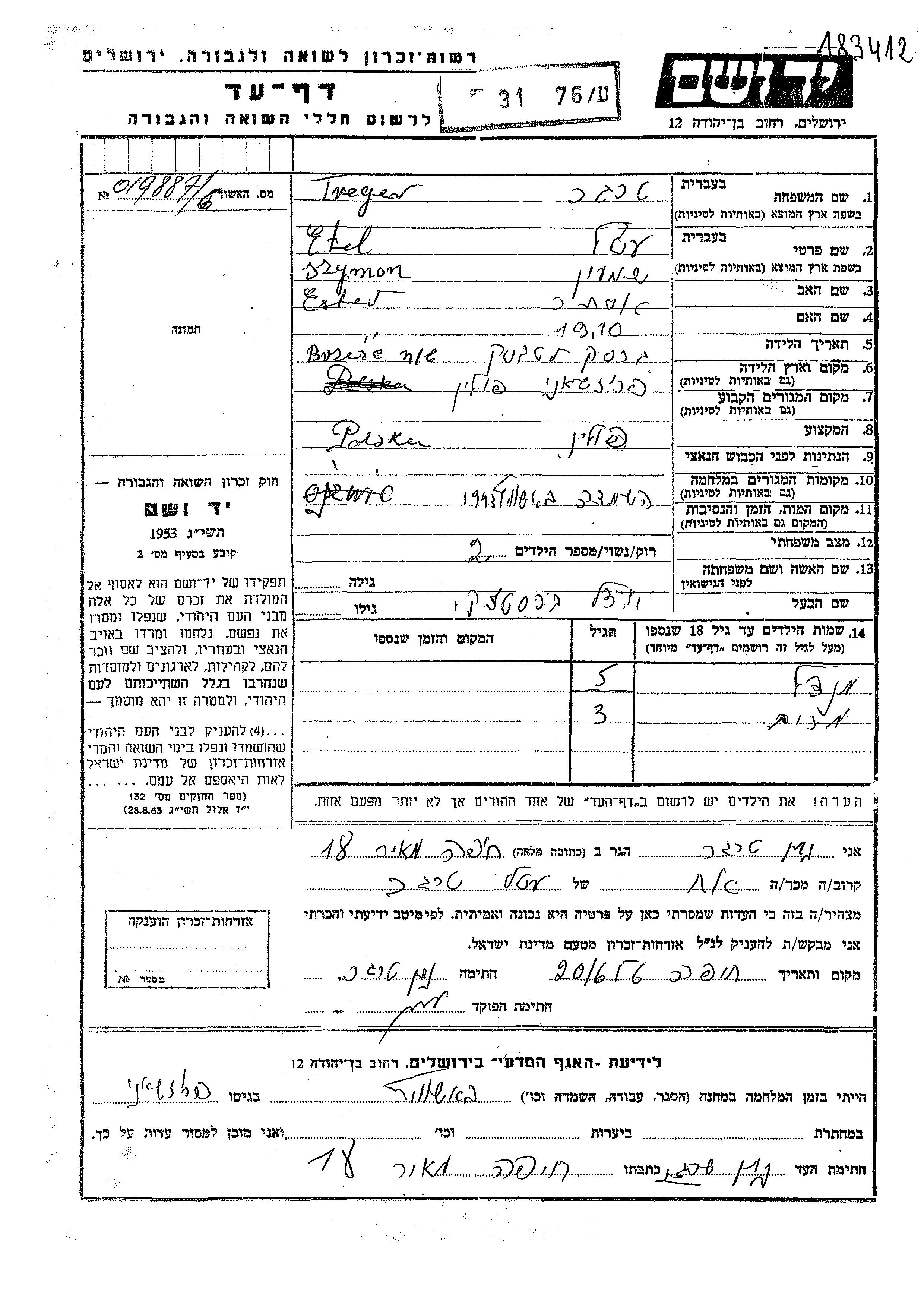 Yad Vashem - Pages of Testimony Names Memorial Collection
