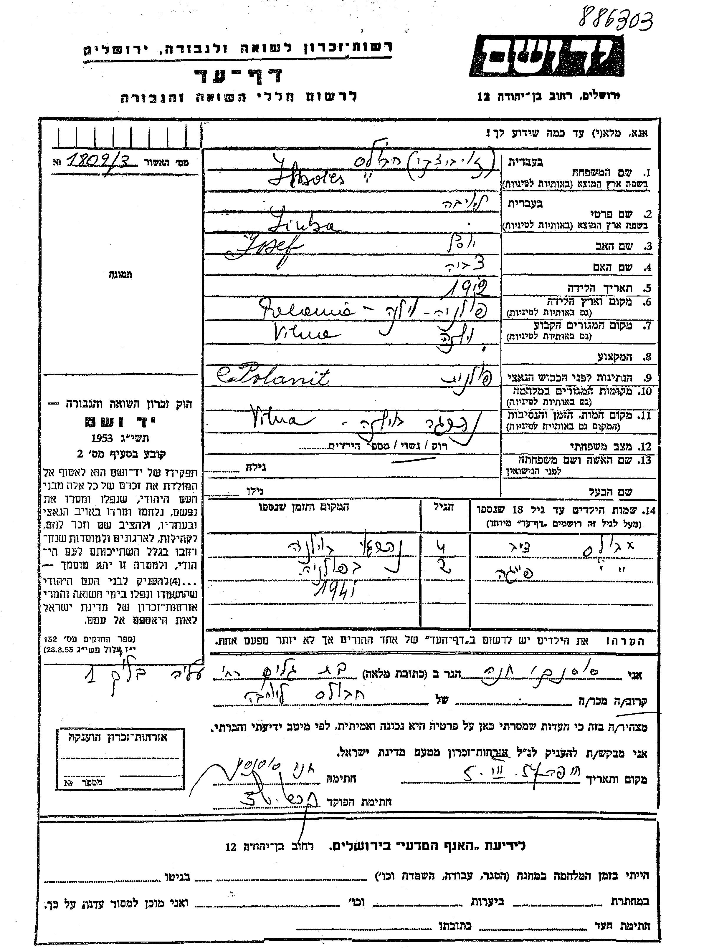 Yad Vashem - Pages of Testimony Names Memorial Collection