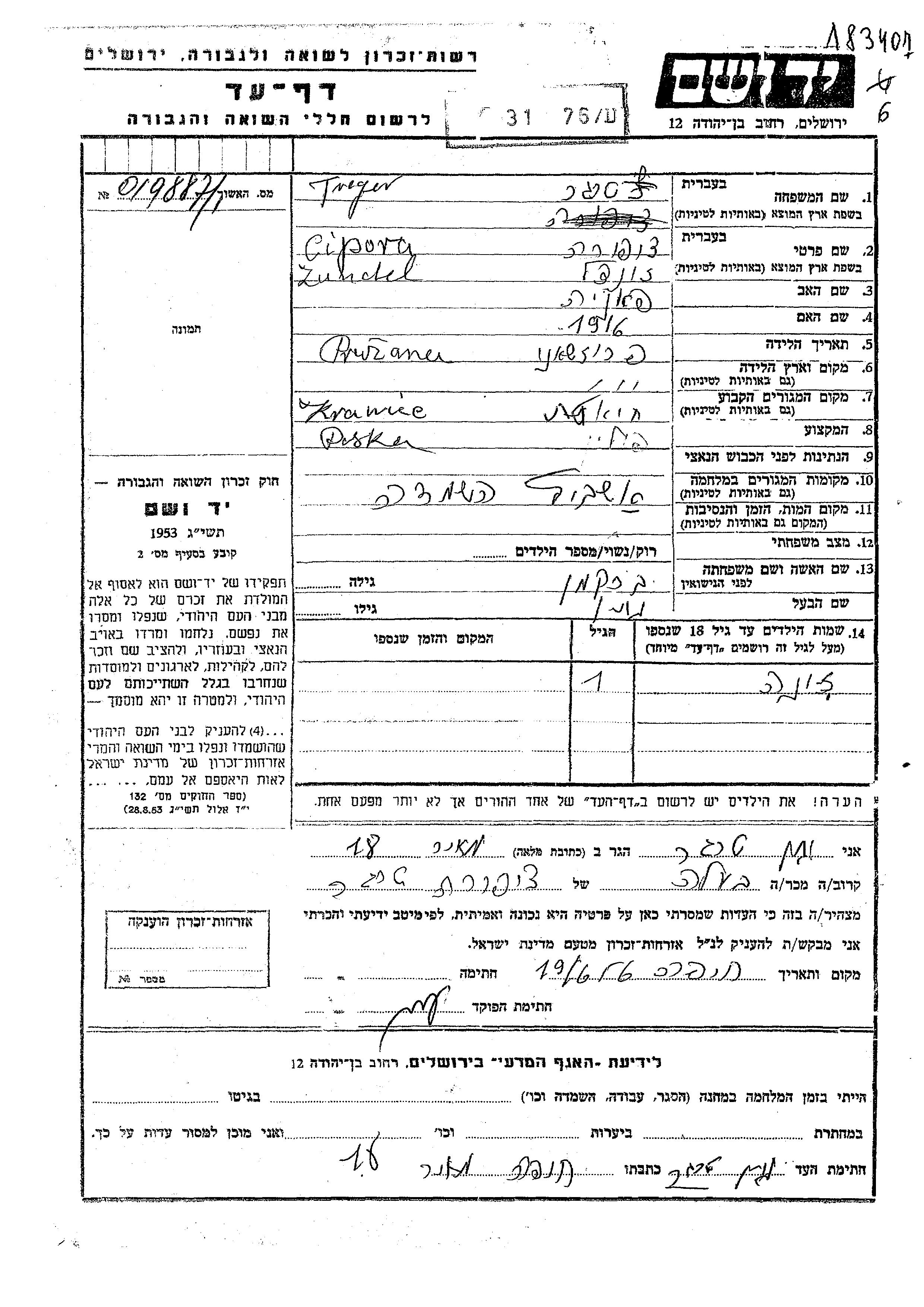 Yad Vashem - Pages of Testimony Names Memorial Collection