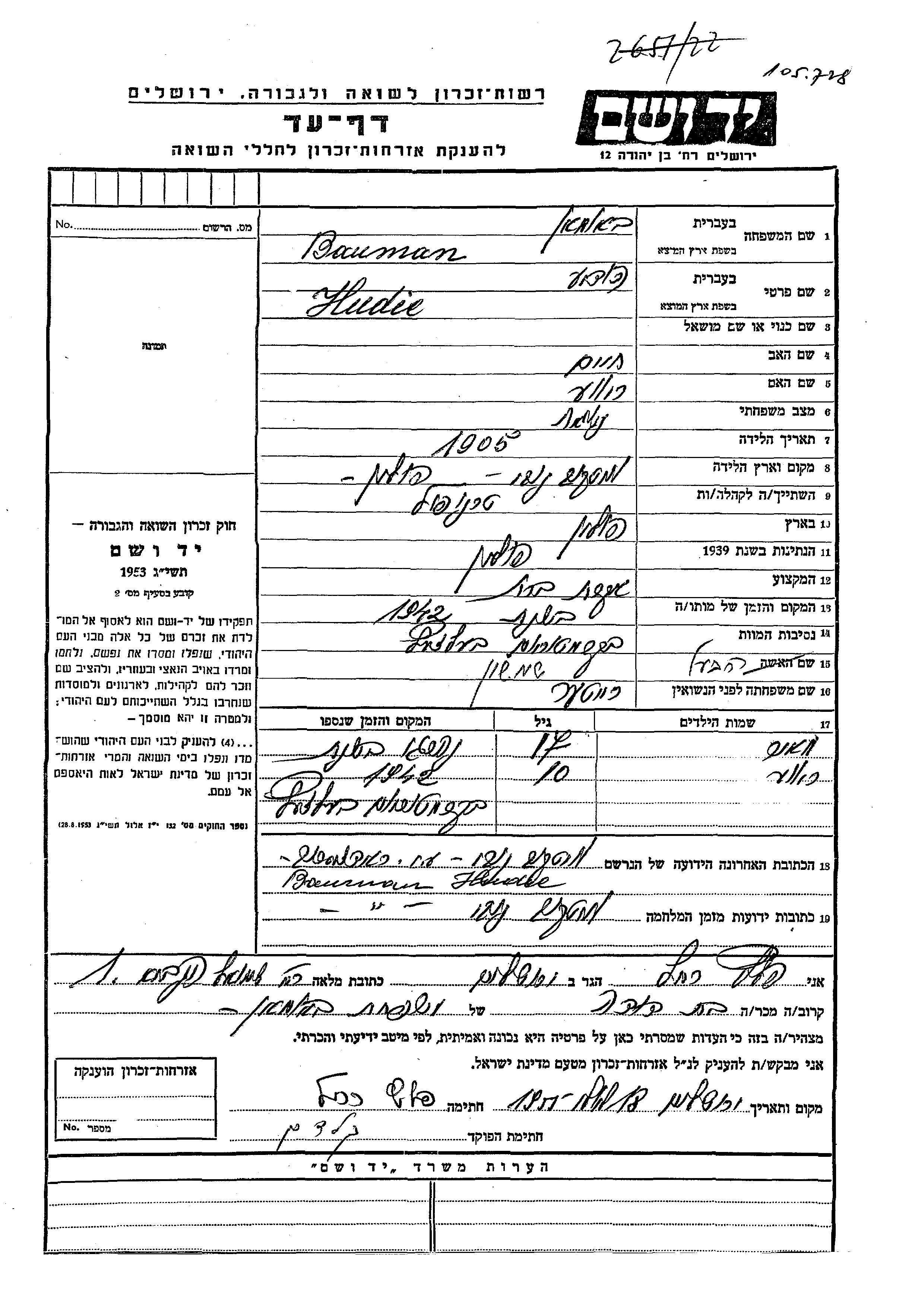 Bauman Meir Tarnopol, Poland Page of Testimony