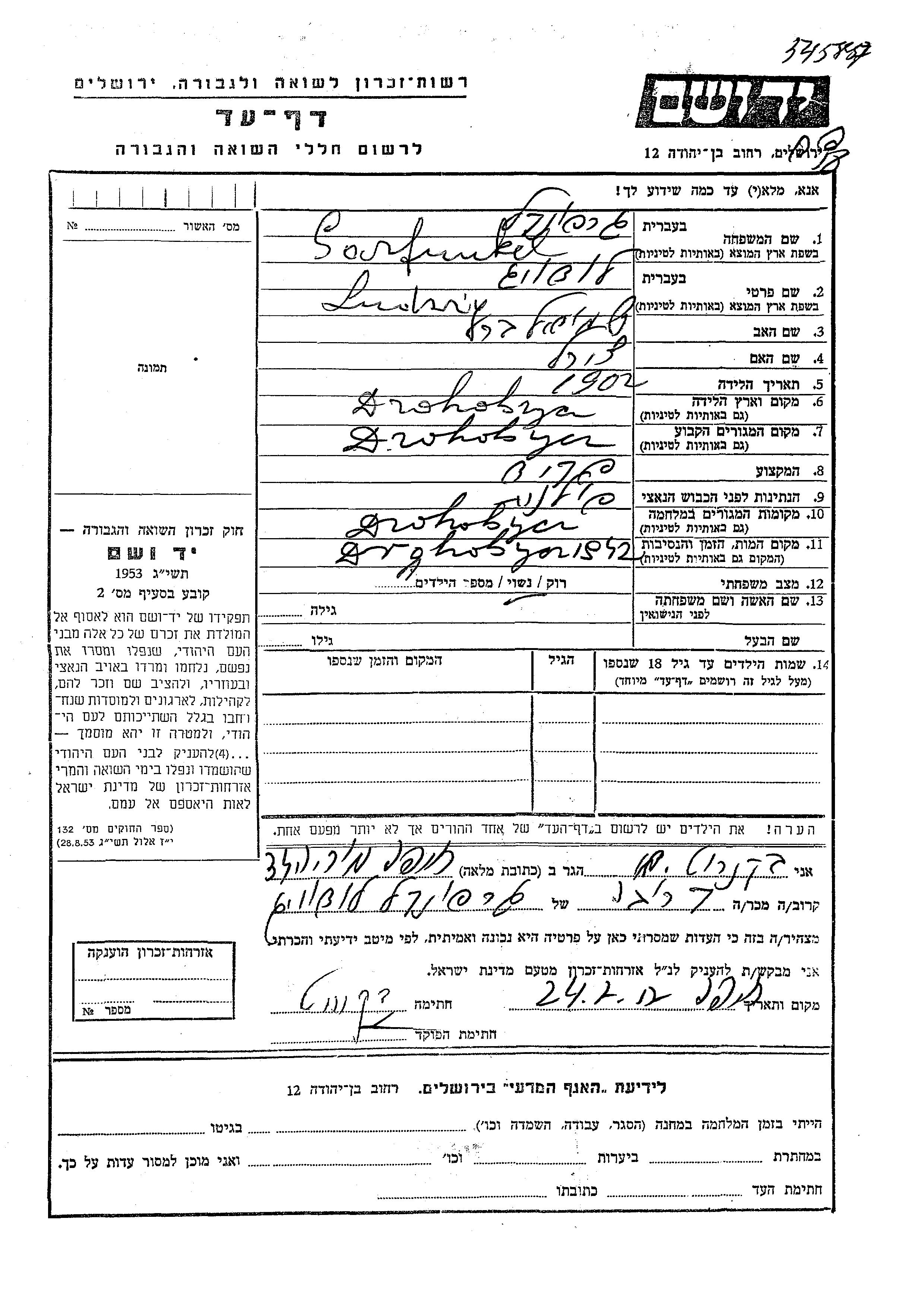 Yad Vashem - Pages of Testimony Names Memorial Collection