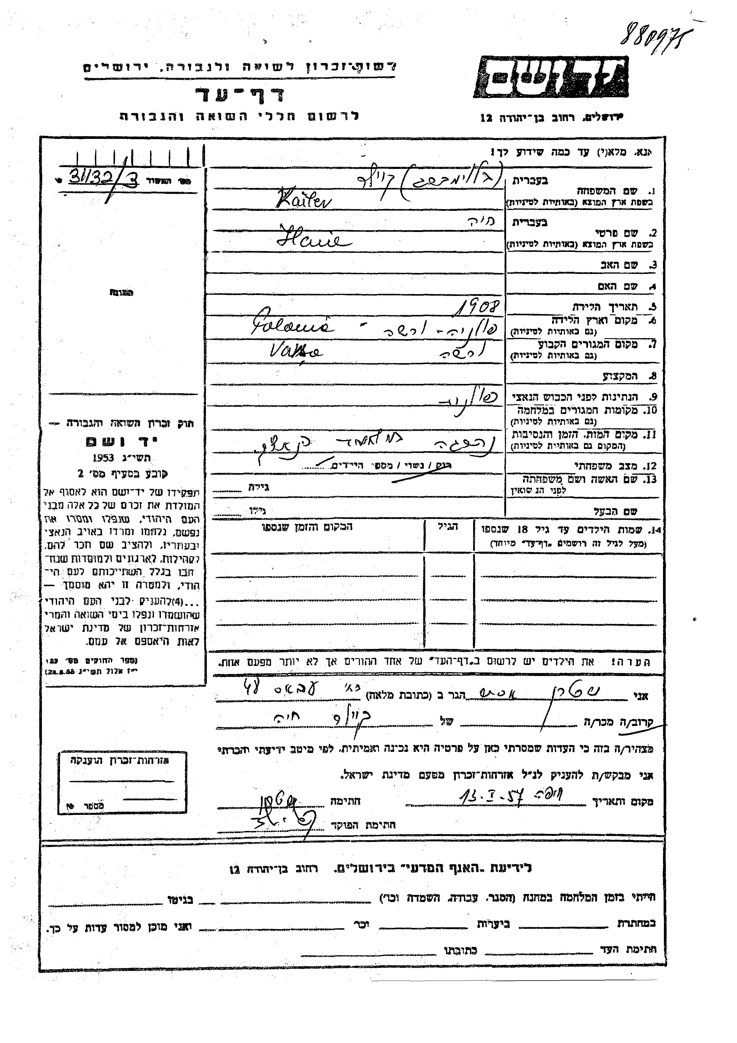 Kailer Hanie Khaia 1908 Warszawa, Poland Page of Testimony