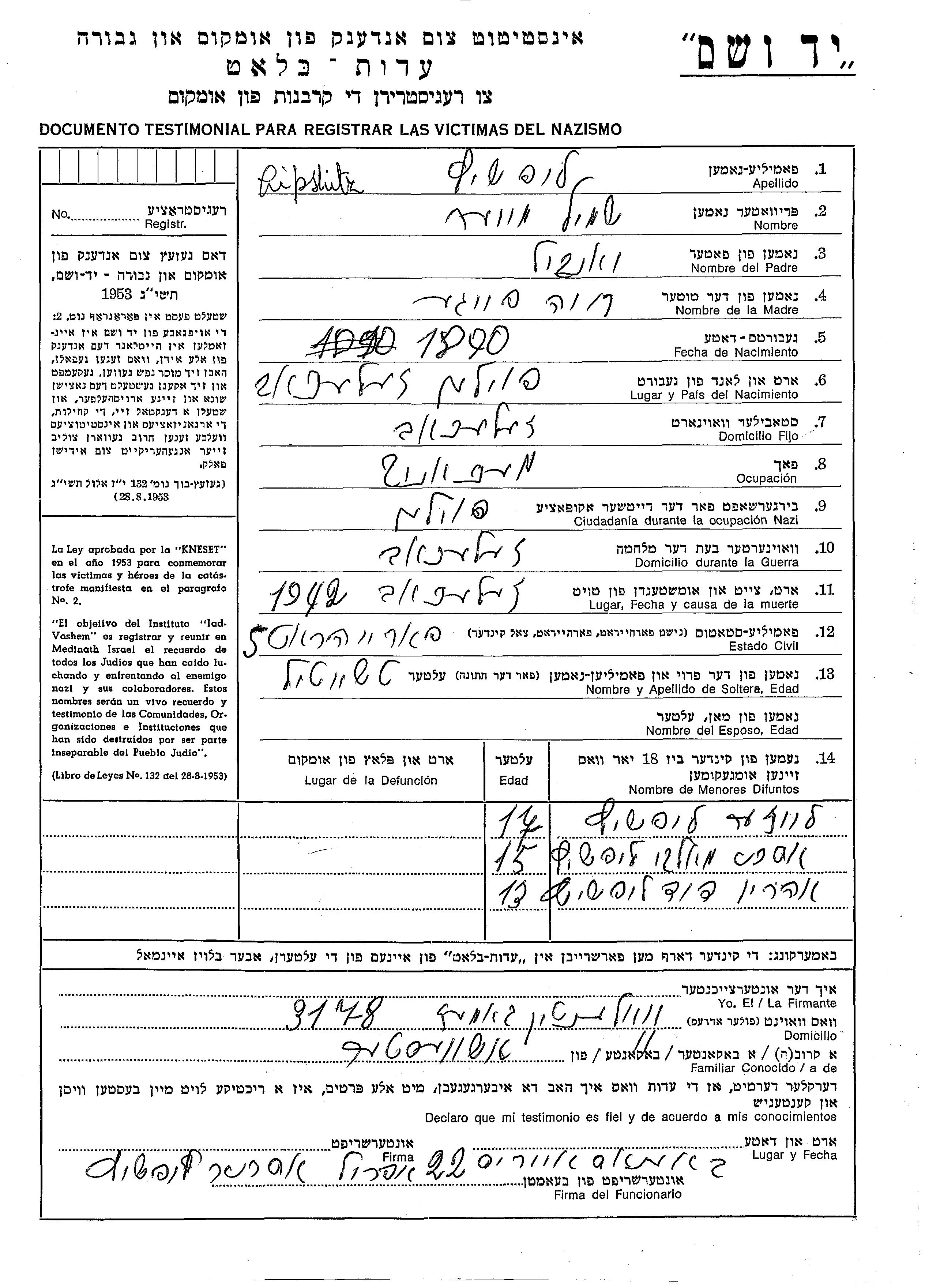 Yad Vashem - Pages of Testimony Names Memorial Collection