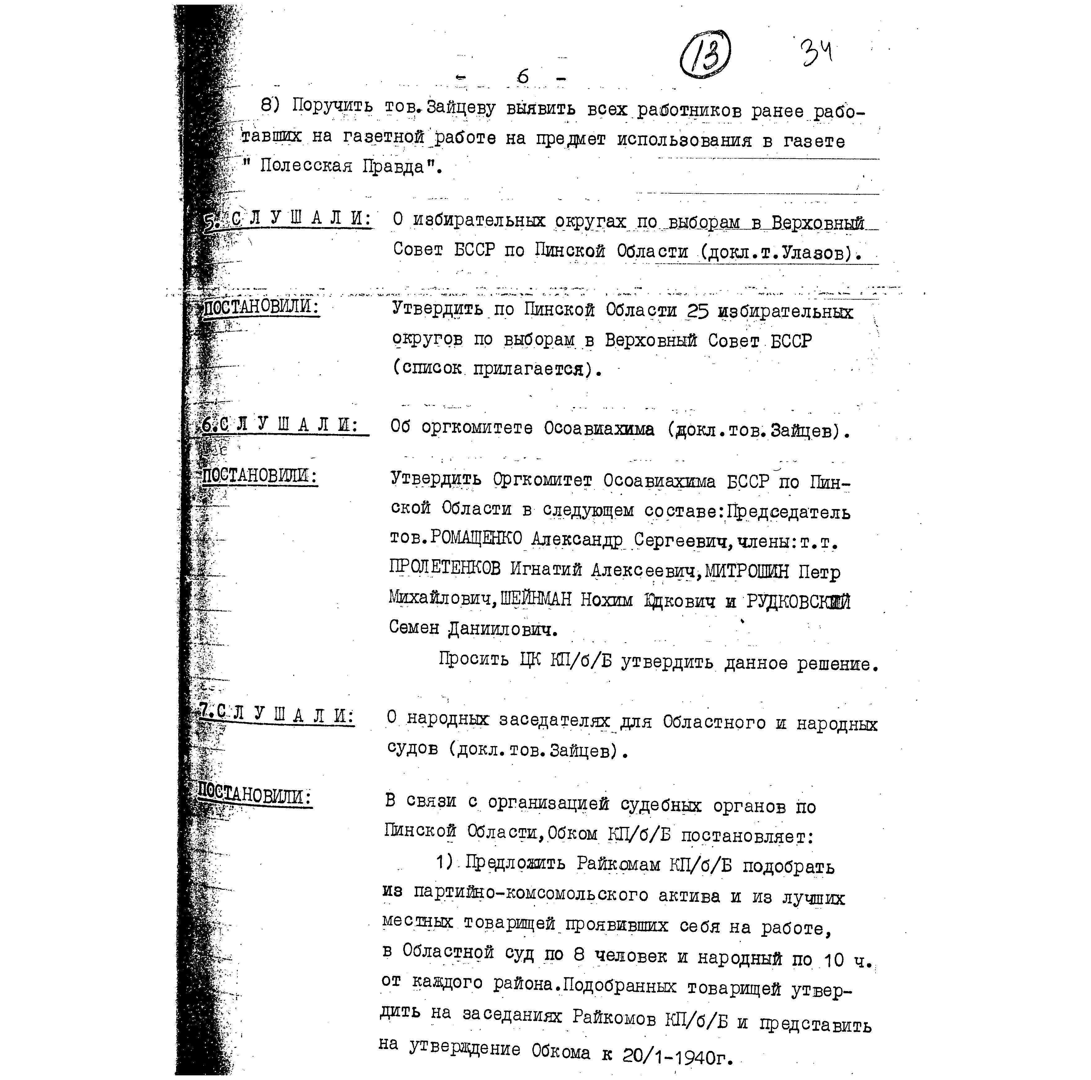Documentation of the regional committee of the Communist Party in Pinsk, 1939-1940