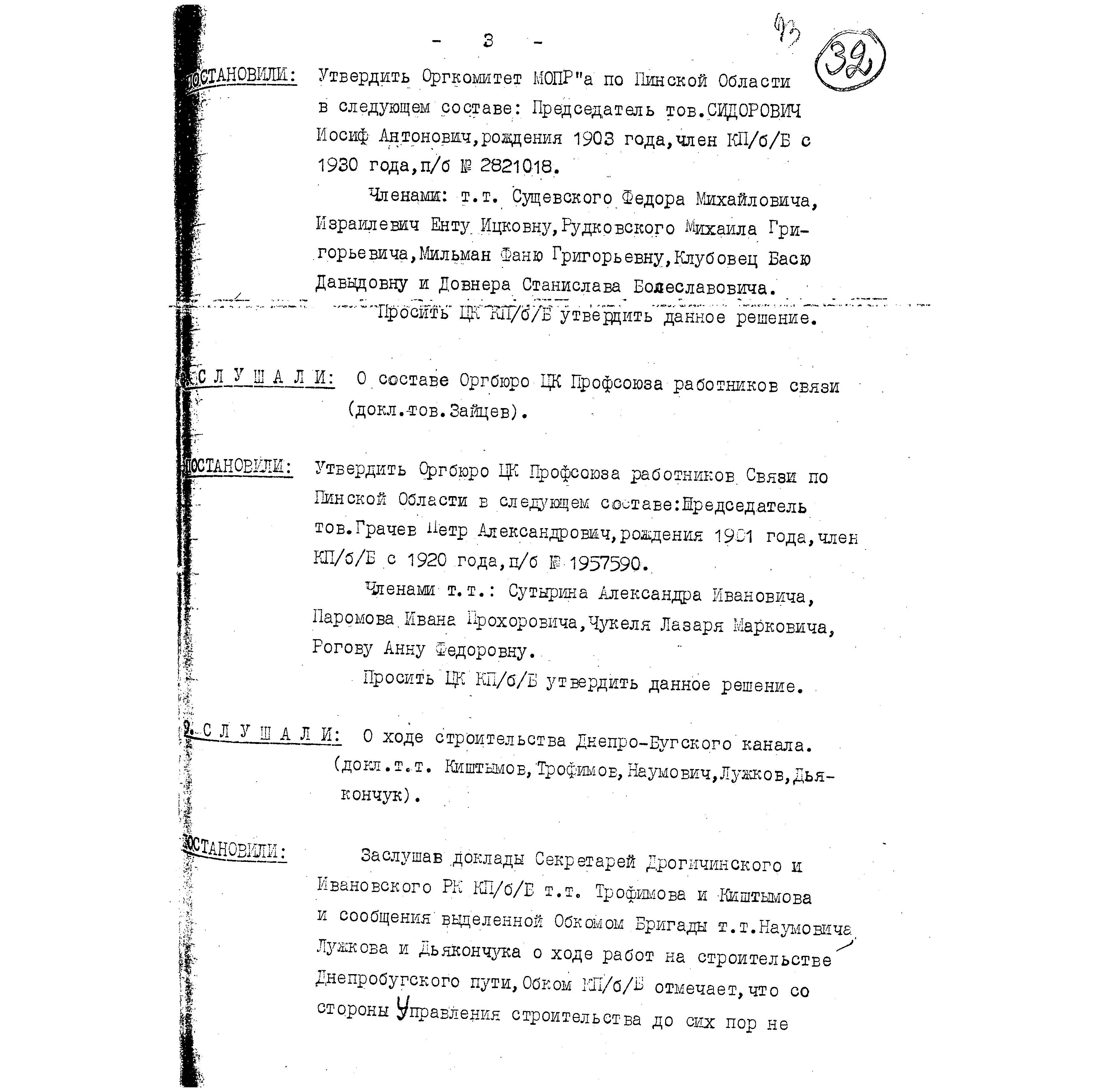 Documentation of the regional committee of the Communist Party in Pinsk, 1939-1940