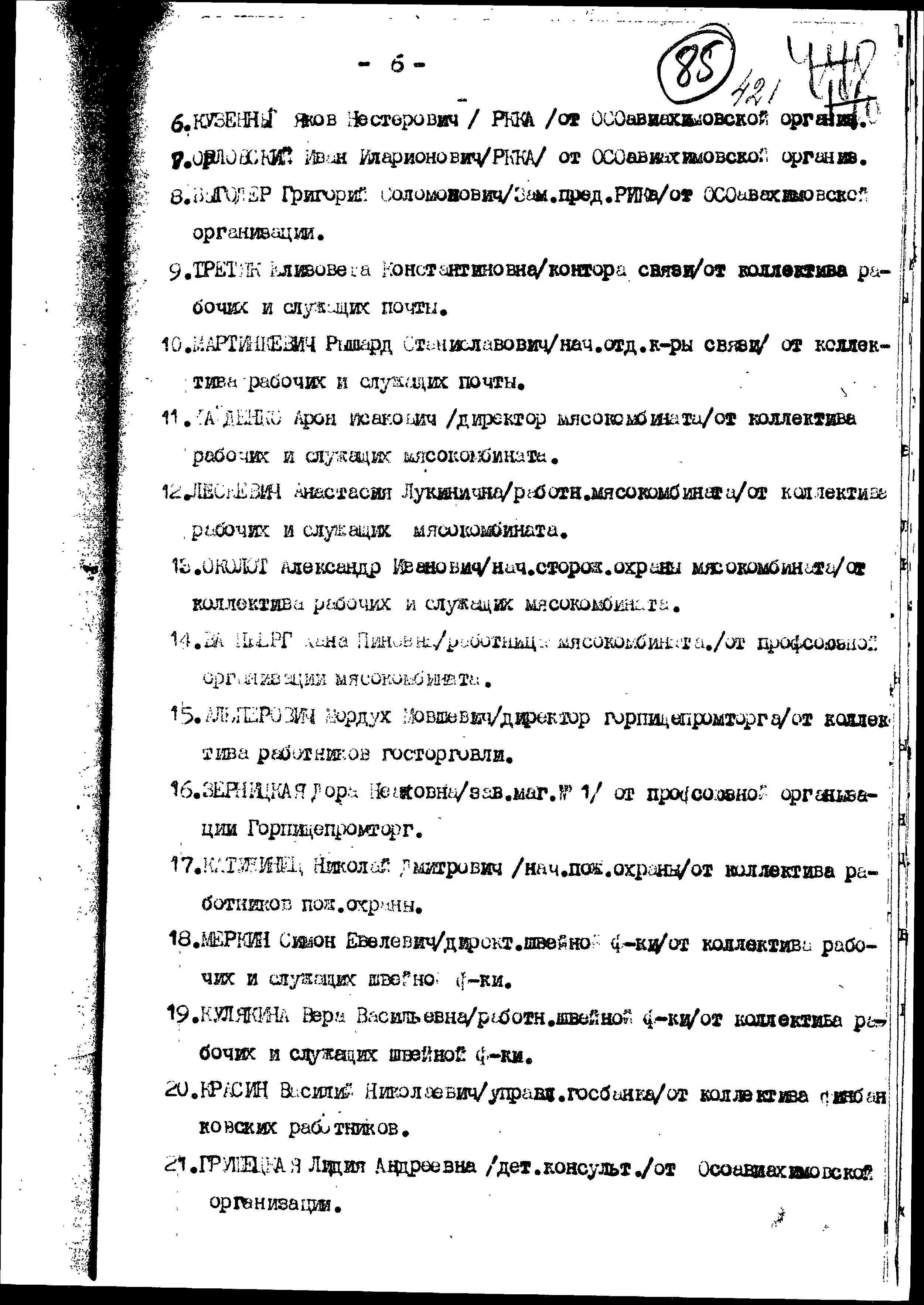 List of candidates for the Executive Committee in Volkovysk, 12/11/1940