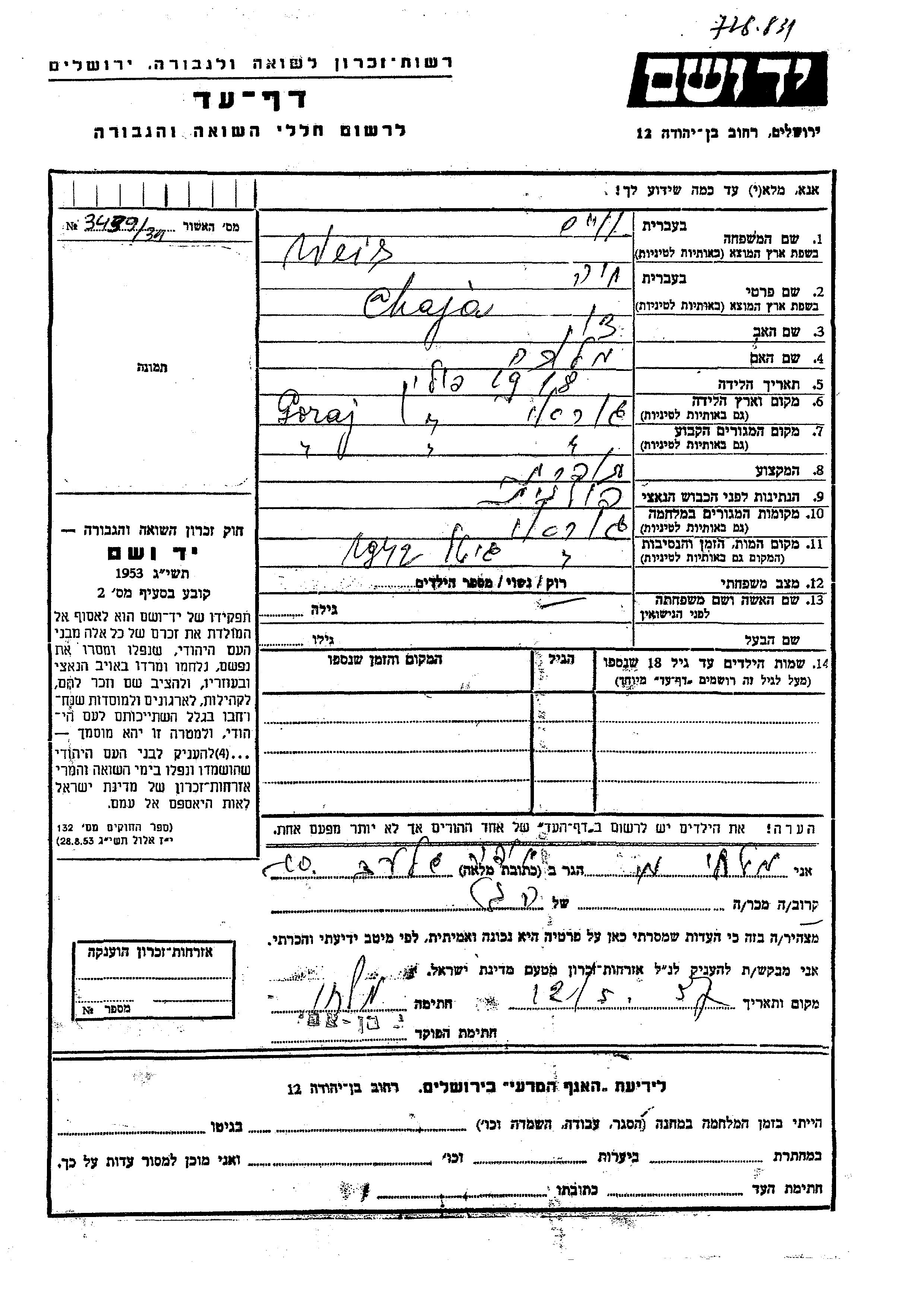 Yad Vashem - Pages of Testimony Names Memorial Collection
