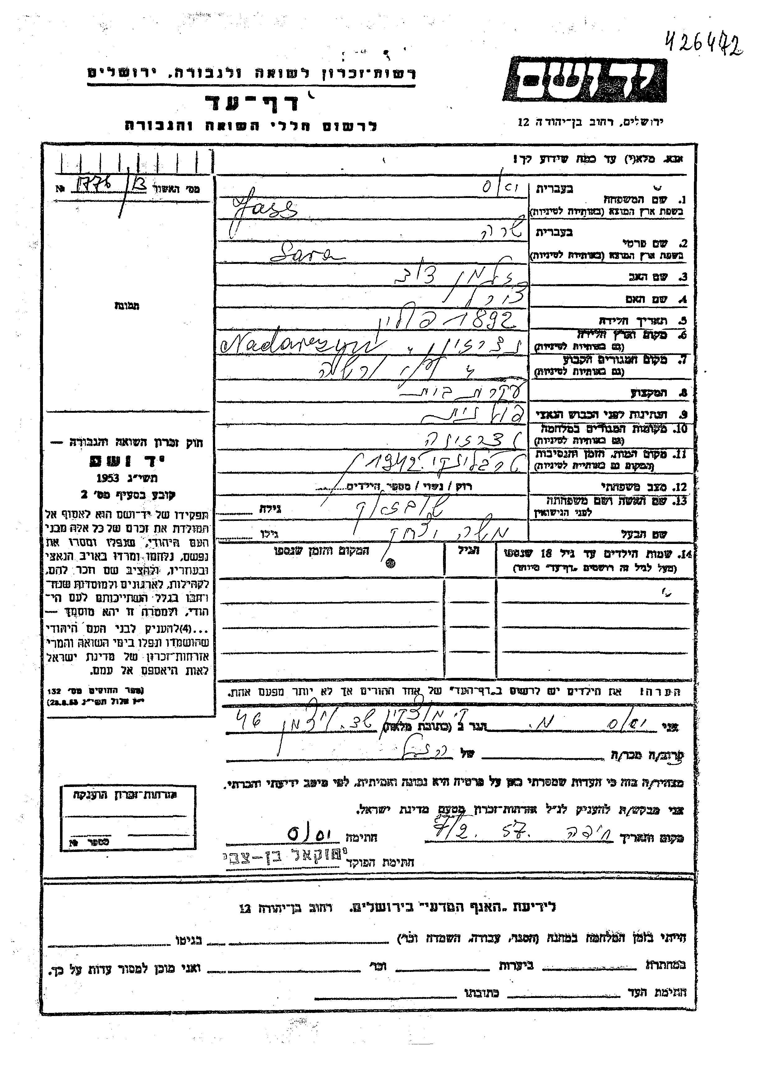 Sara Jass nee Shubzak was born in Nadarzyn, Poland, 1892 to Zalman David and Tzirel. She was a housewife and married to Moshe Yitzkhak. Prior to WWII she lived in Nadarzyn, Poland. During the war she was in Nadarzyn, Poland. Sara was murdered in the Shoah. Place of death: Treblinka, Poland, 1942.