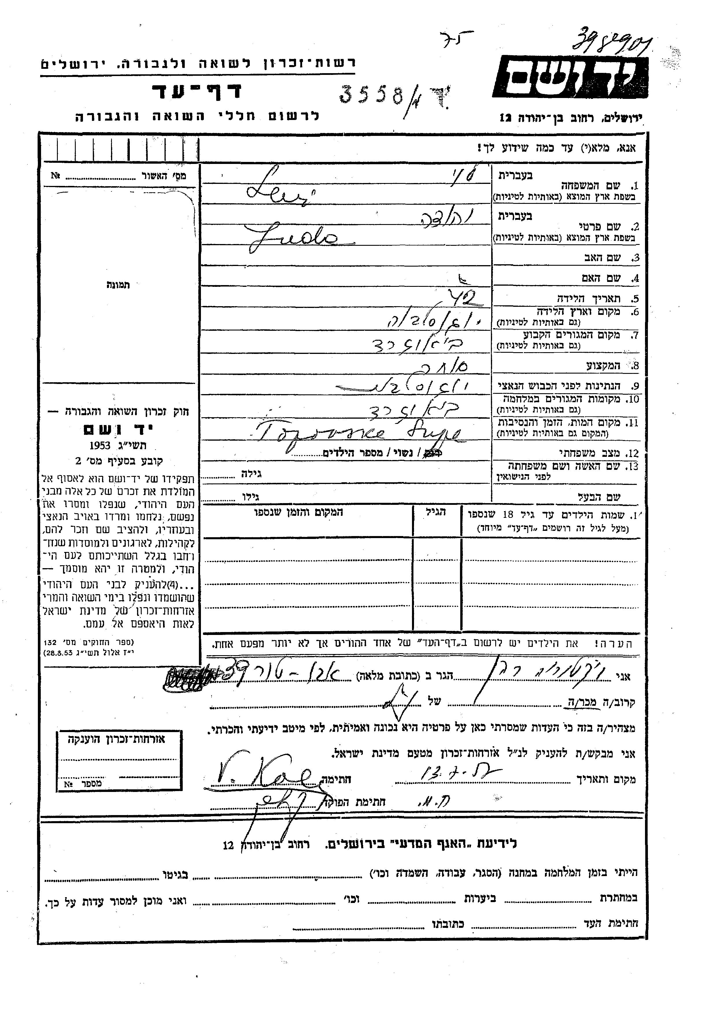 Juda Levi was born in Yugoslavia. He was a merchant and married. Prior to WWII he lived in Beograd, Yugoslavia. During the war he was in Beograd, Yugoslavia.