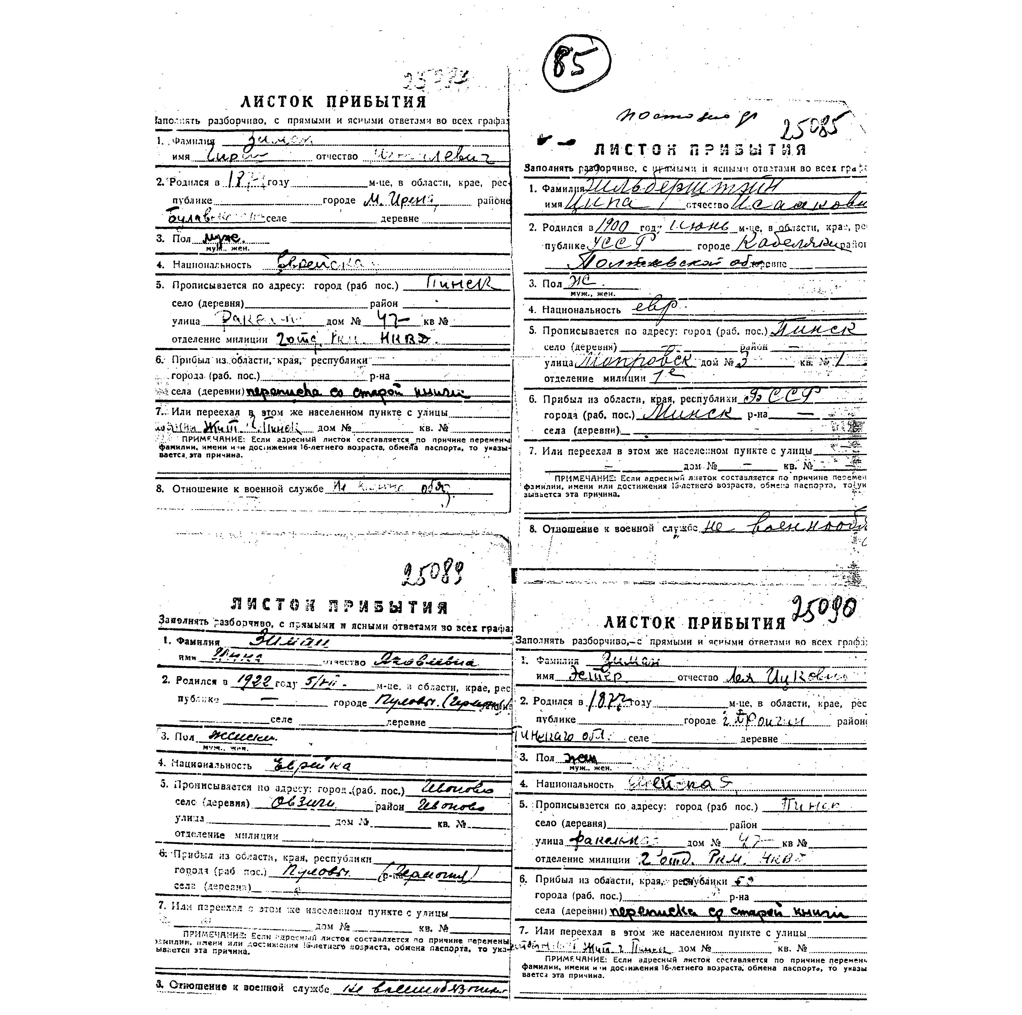 Zimen Girsh Pinsk, Poland List of persecuted persons