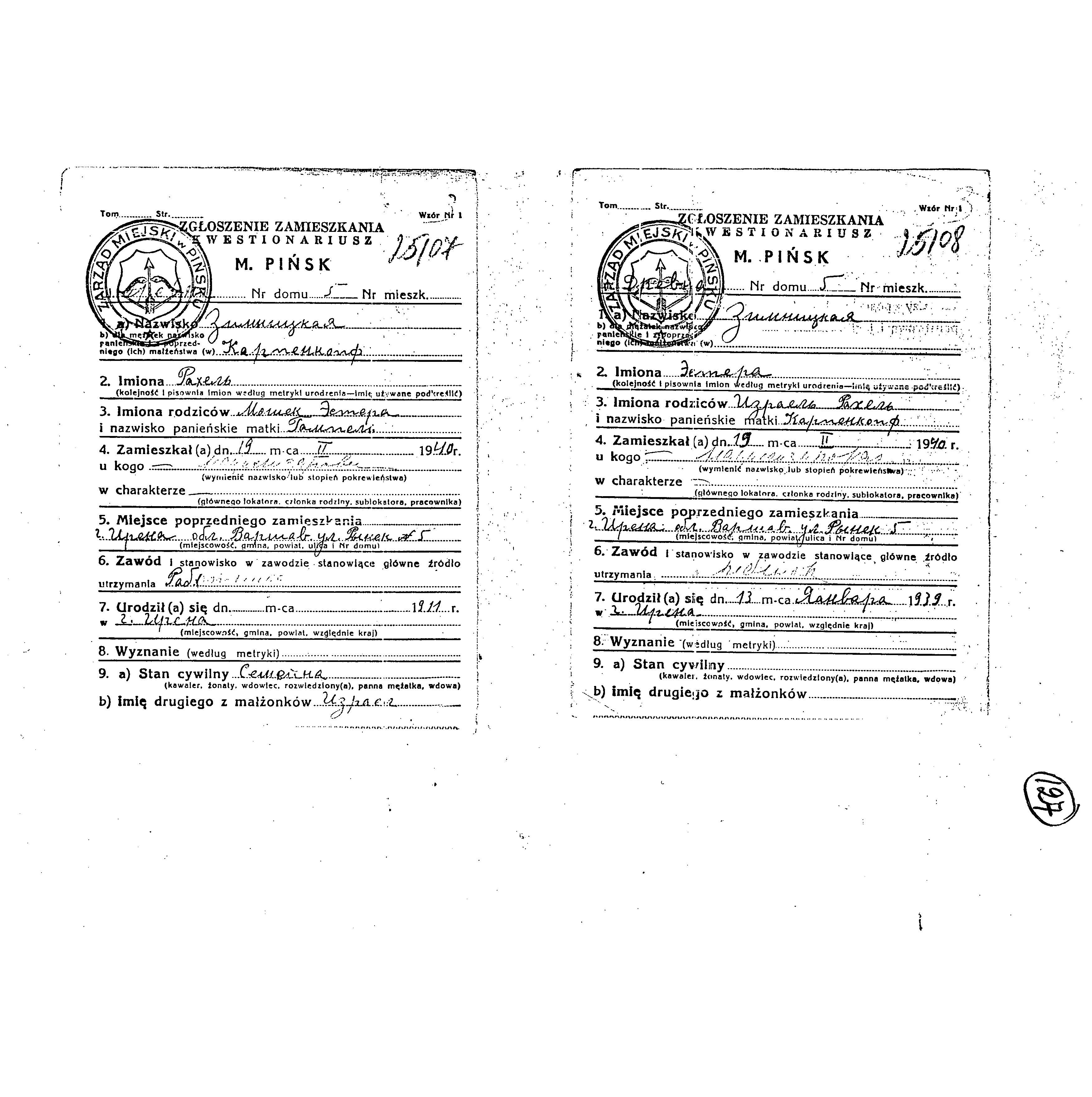 Rakhel Zimnitzkaya nee Karpenkopf was born in Irena, Poland, 1911 to Moshek and Estera nee Gampel. She was a worker and married to Izrael. Prior to WWII she lived in Irena, Poland.