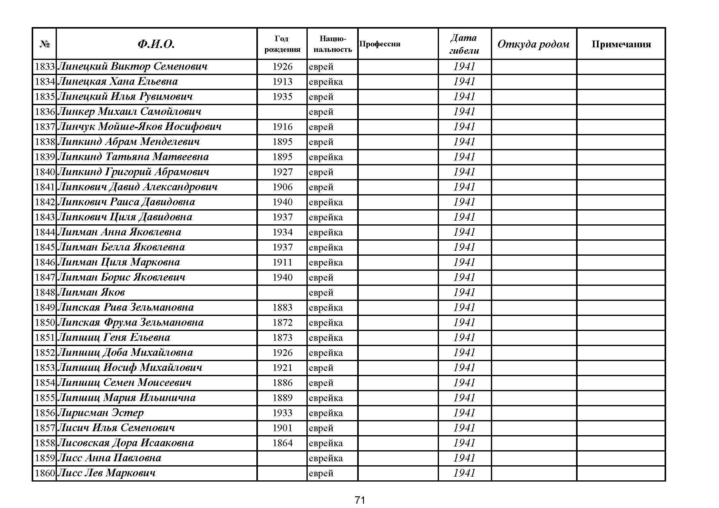 Lipman Anna 1934 Ukraine (USSR) List of persecuted persons