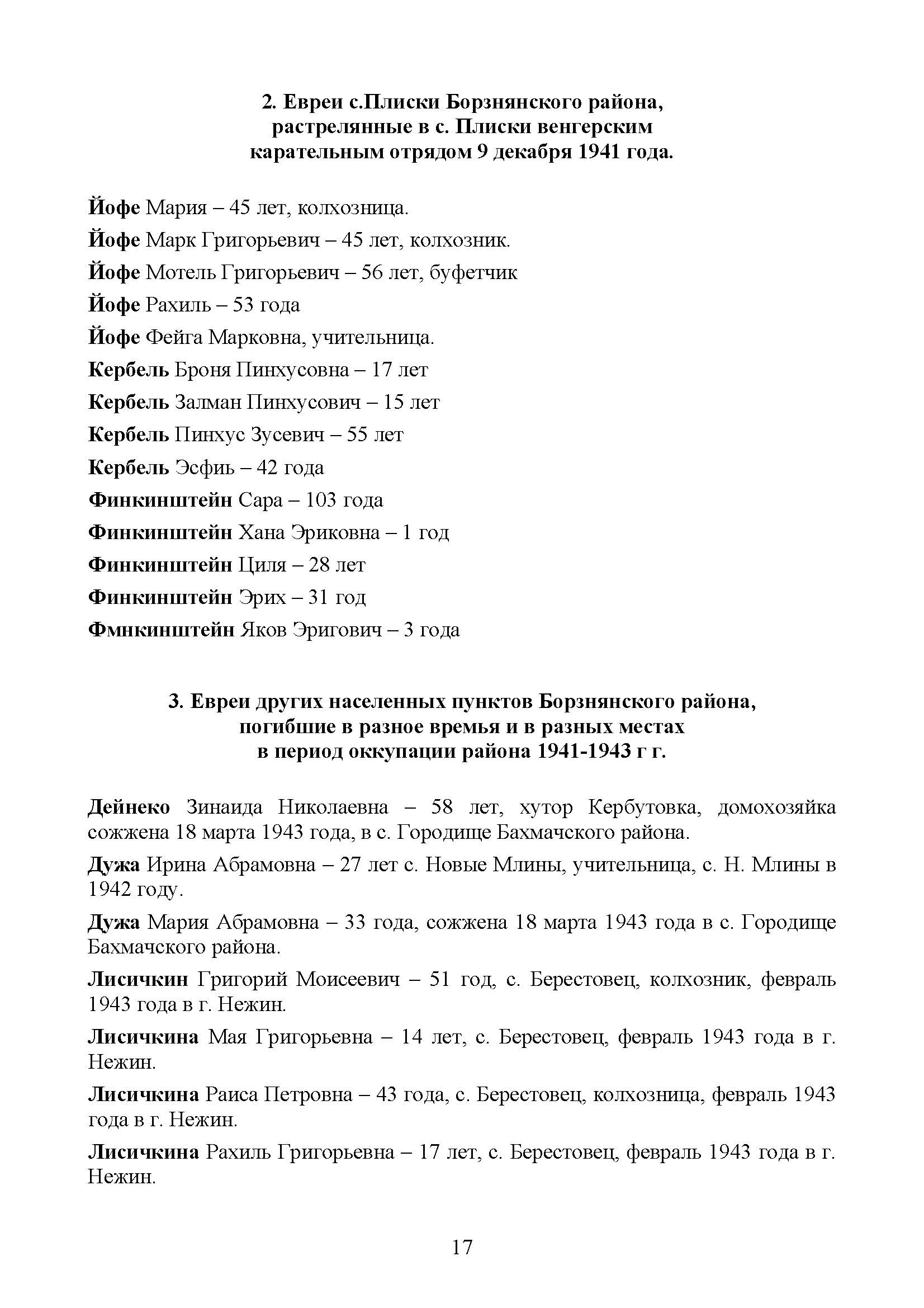 Kerbel Pinkhus Pliski, Ukraine (USSR) List of persecuted persons