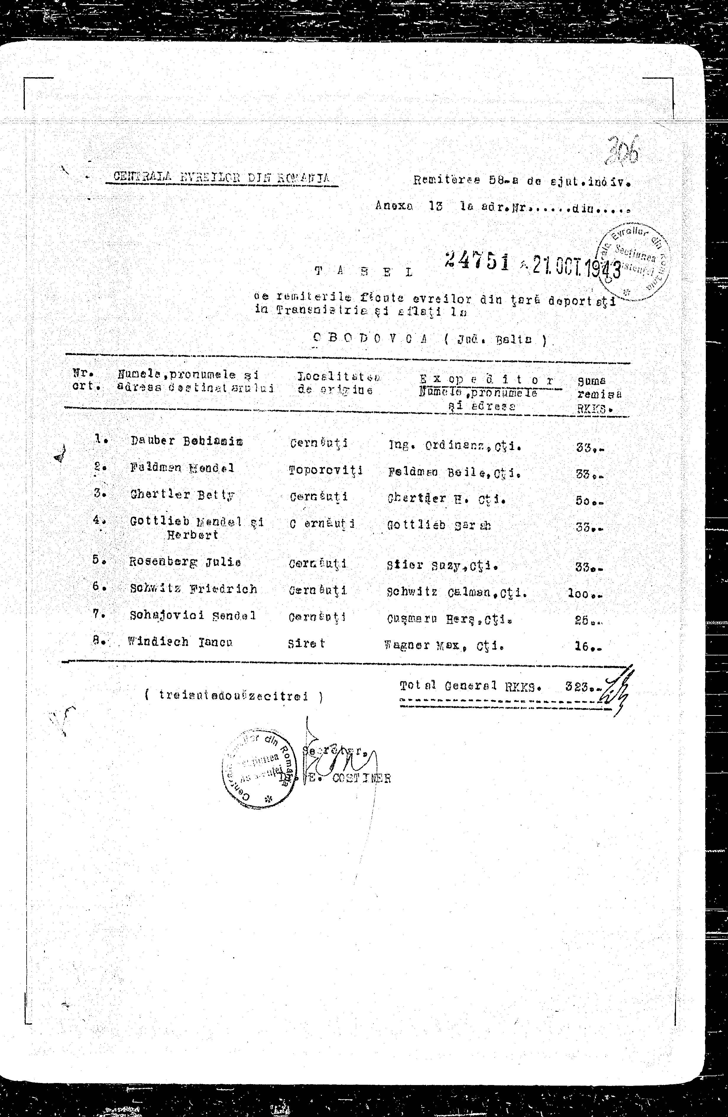 Schajovici Sendel Cernauti, Romania List of persecuted persons