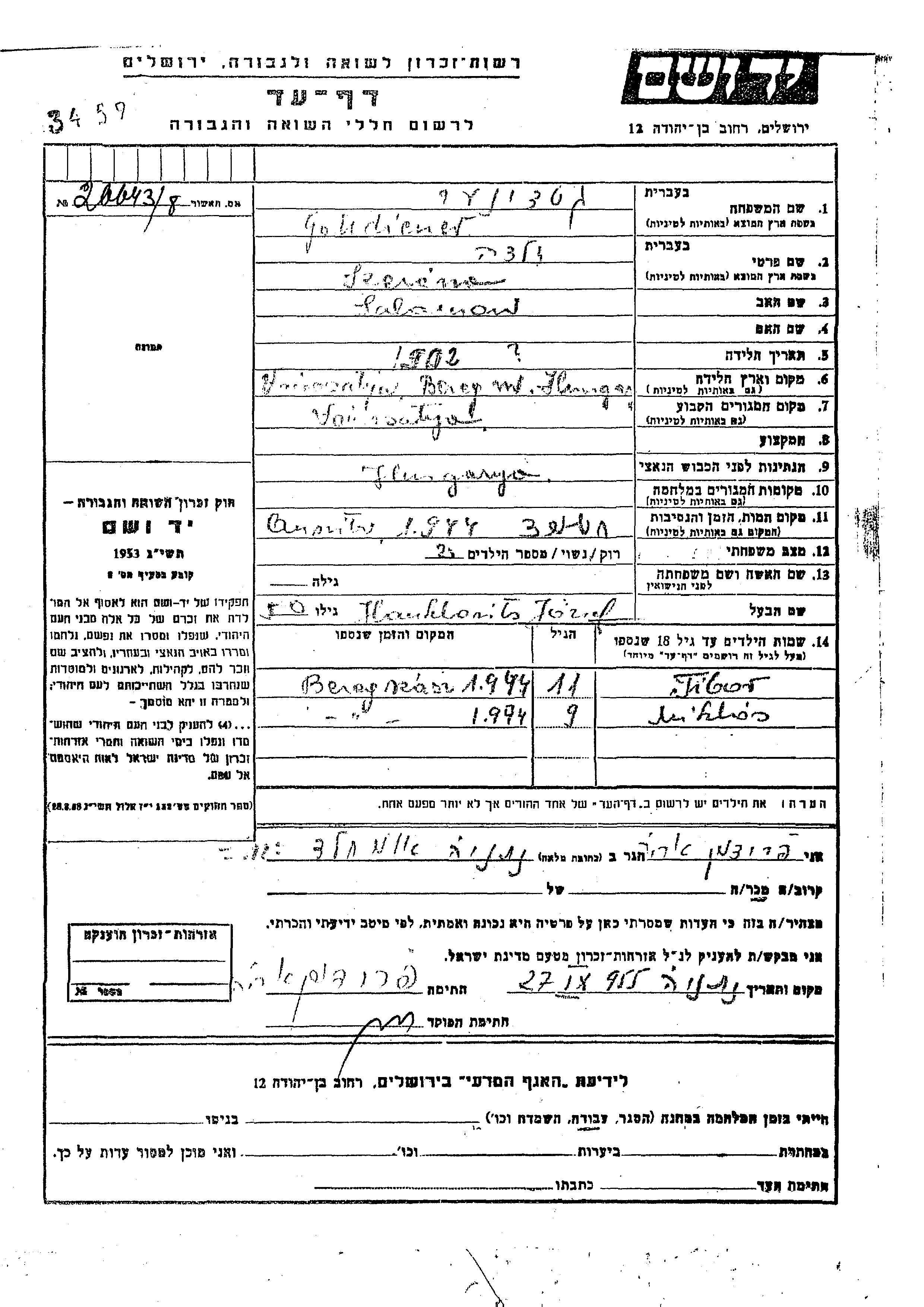 Yad Vashem - Pages of Testimony Names Memorial Collection