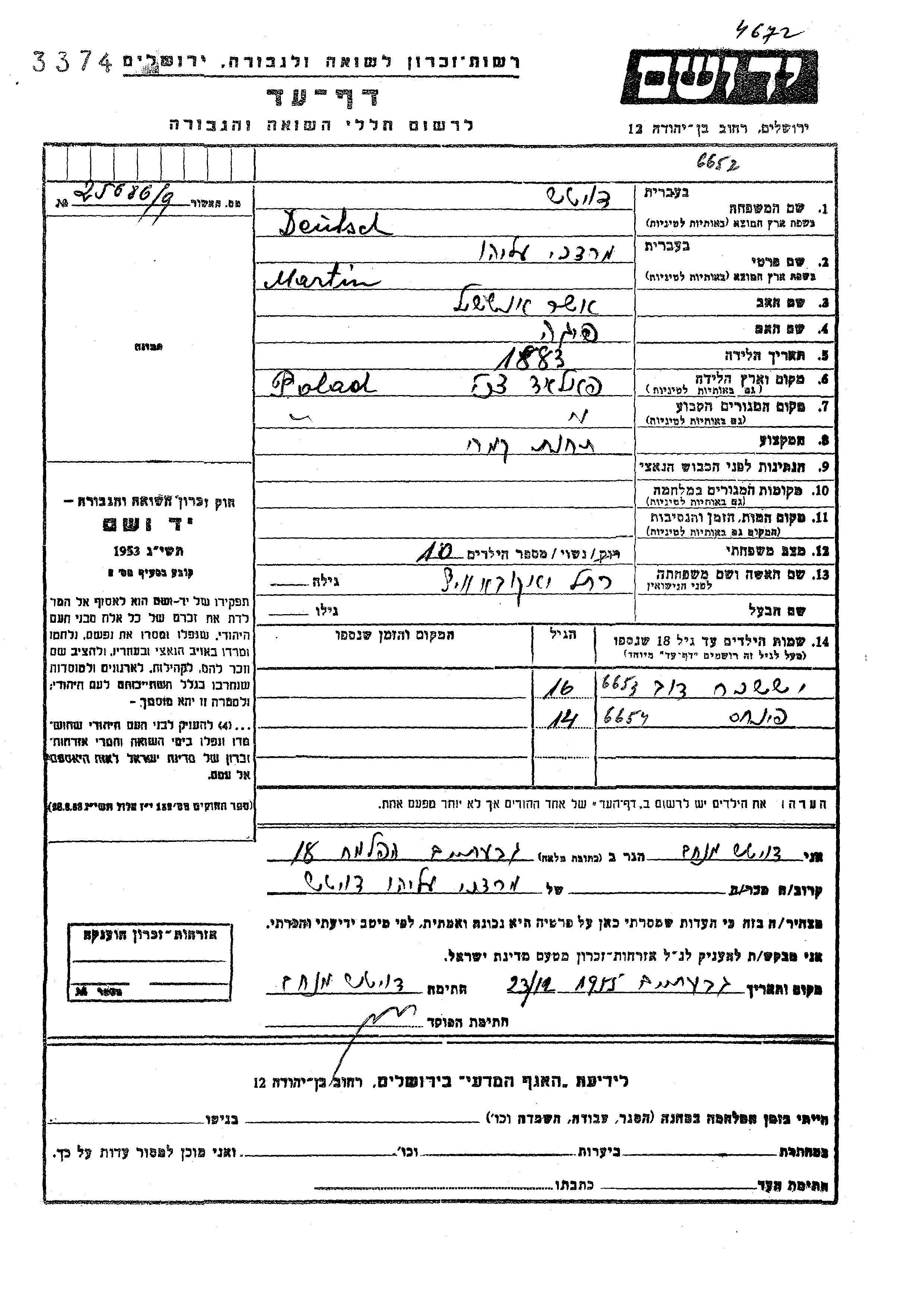 Yad Vashem - Pages of Testimony Names Memorial Collection