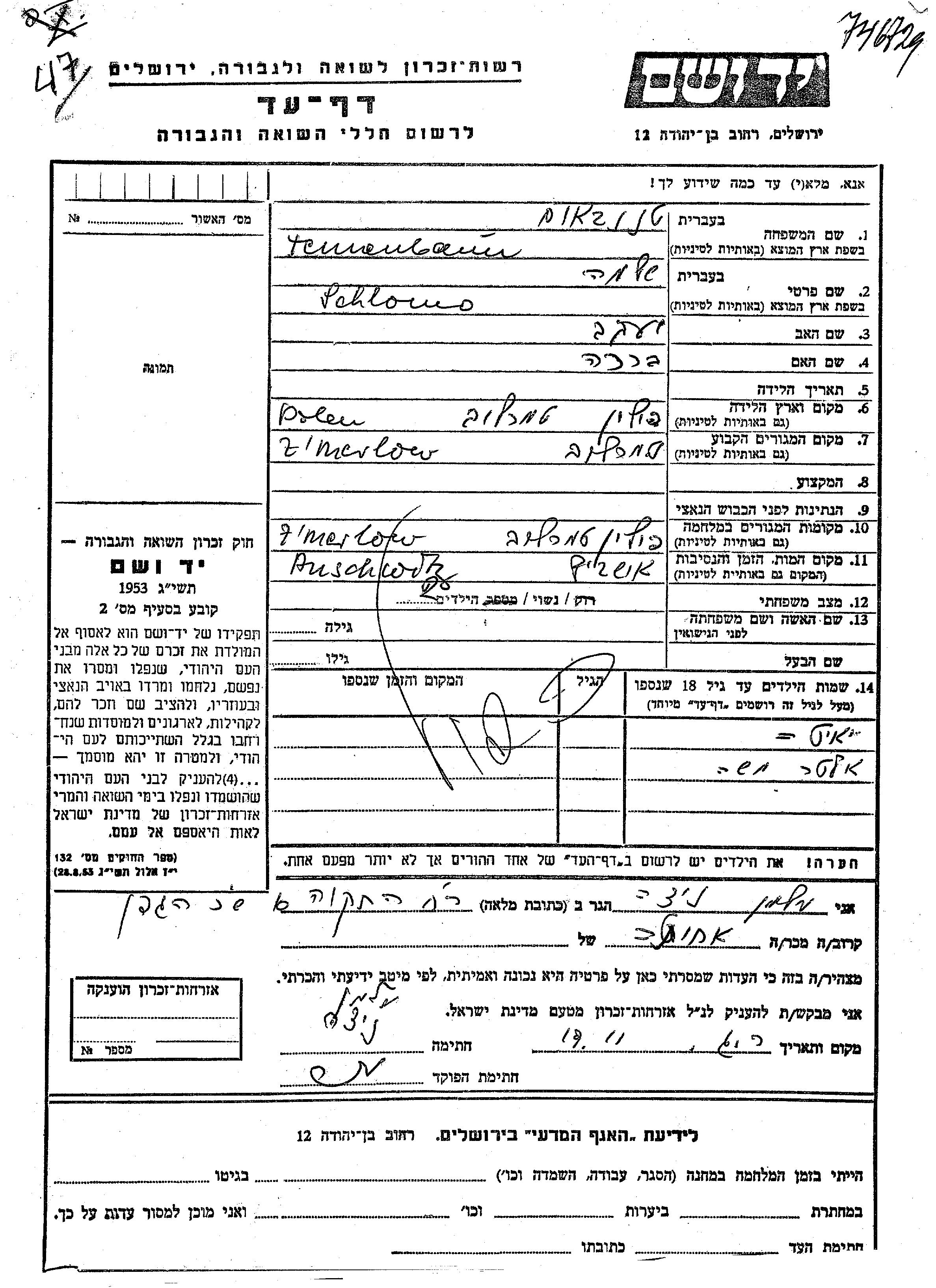 Yad Vashem - Pages of Testimony Names Memorial Collection