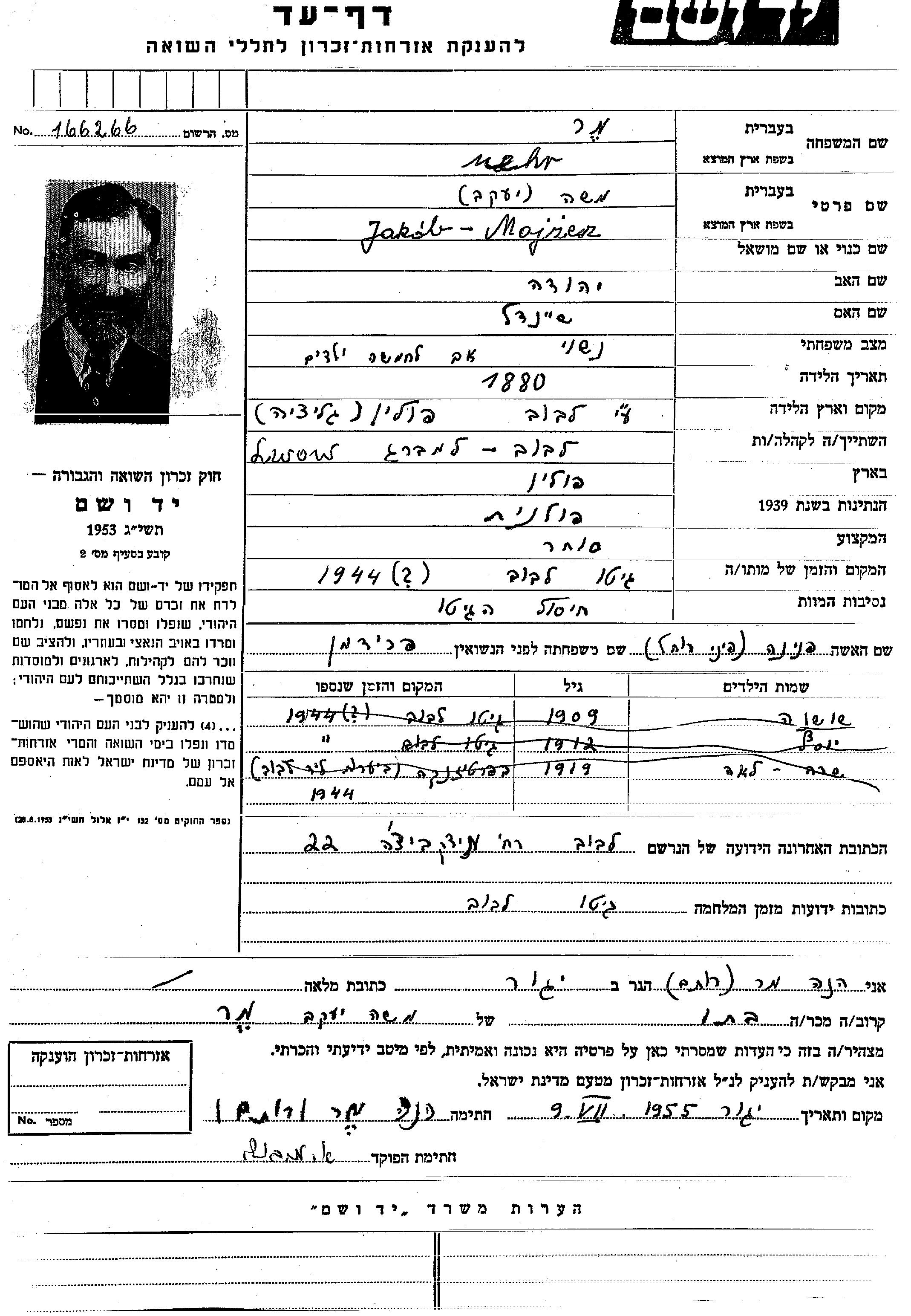 Sara Lea Mehr was born, 1919 to Jakob Mojzesz and Pnina Pini Rukhl nee Fridman. Prior to WWII she lived in Lwow, Poland. During the war she was in Lwow, Poland. Sara Lea was murdered in the Shoah.