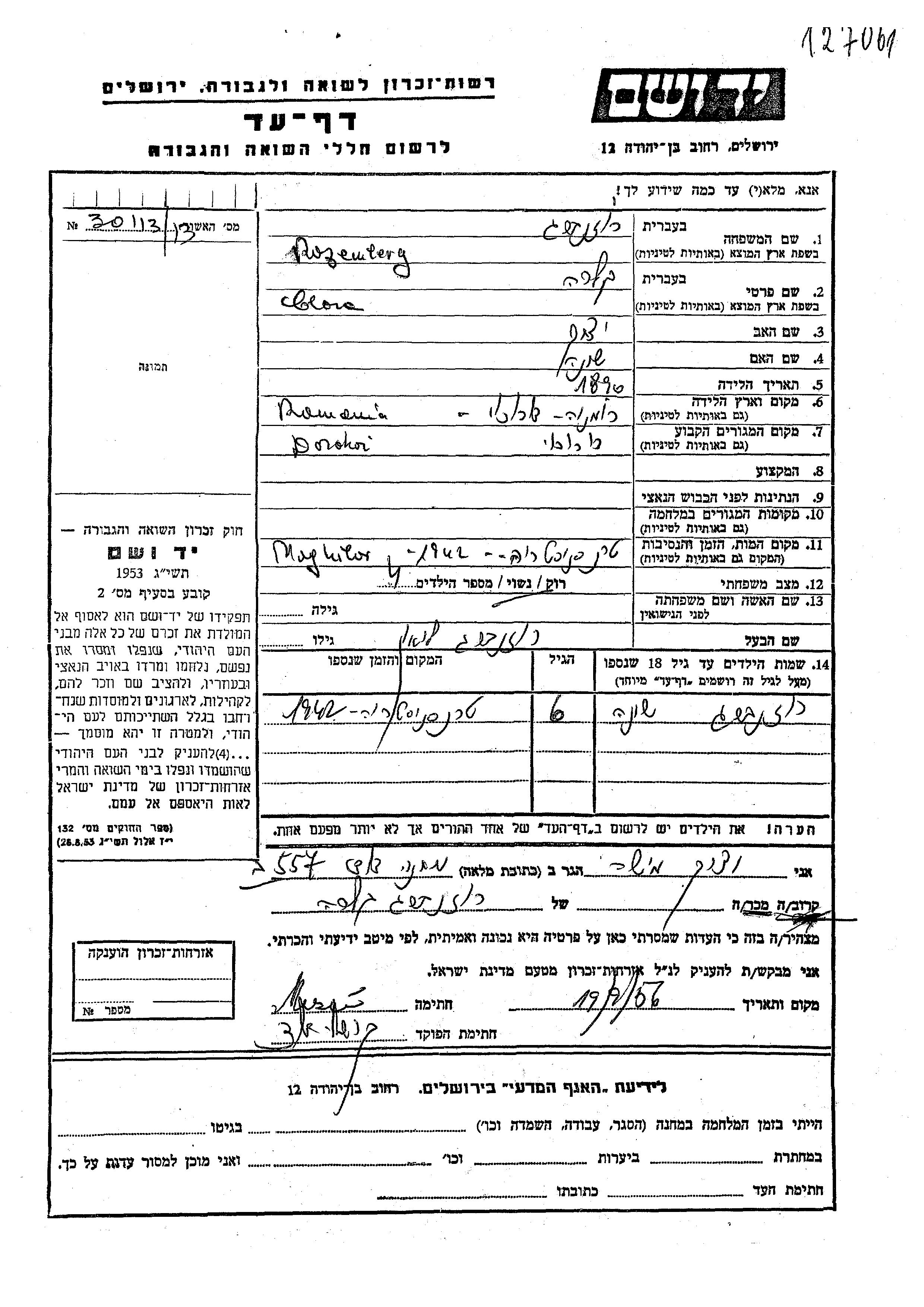 Rozenberg Shuna Dorohoi, Romania Page of Testimony