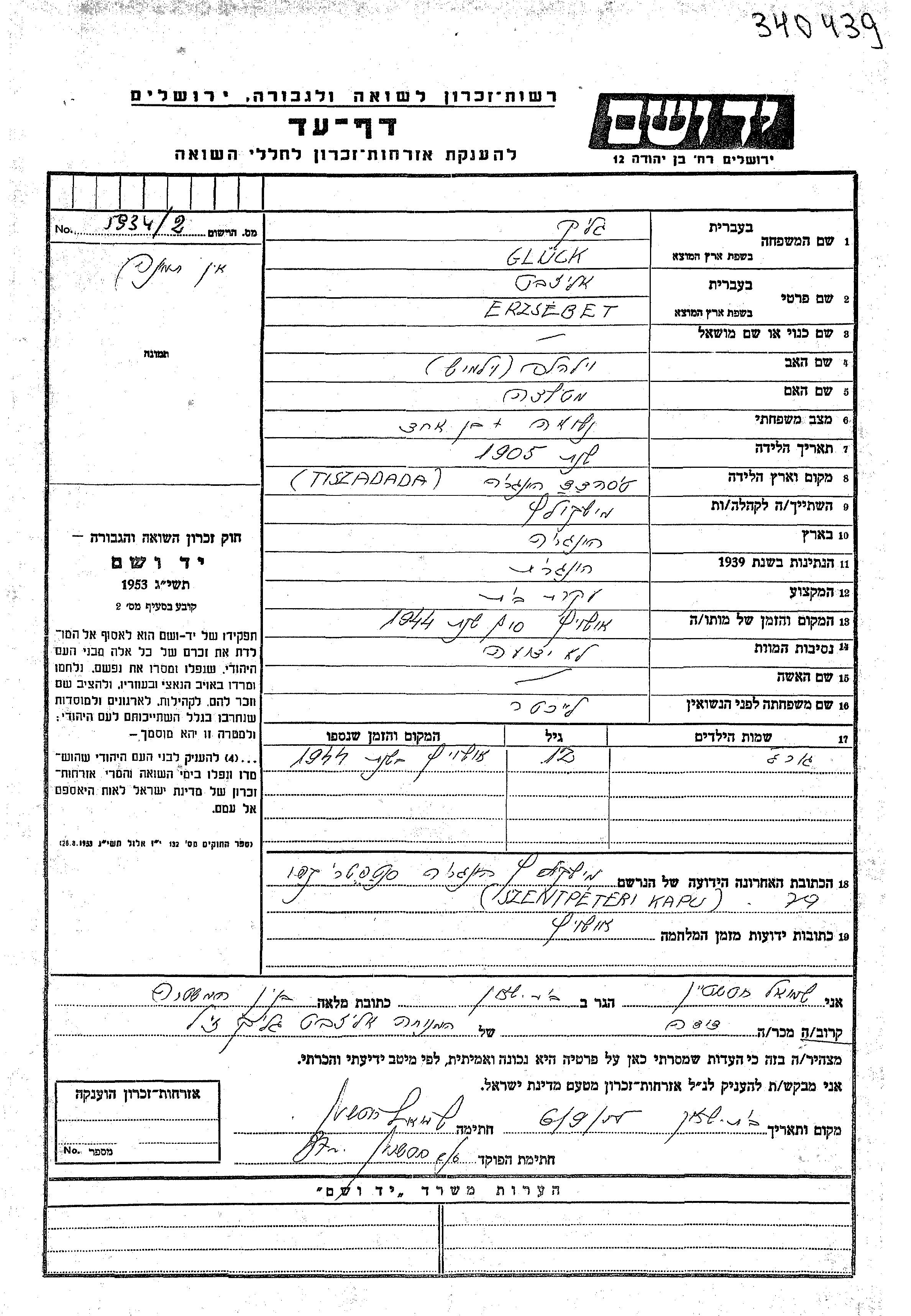 Yad Vashem - Pages of Testimony Names Memorial Collection