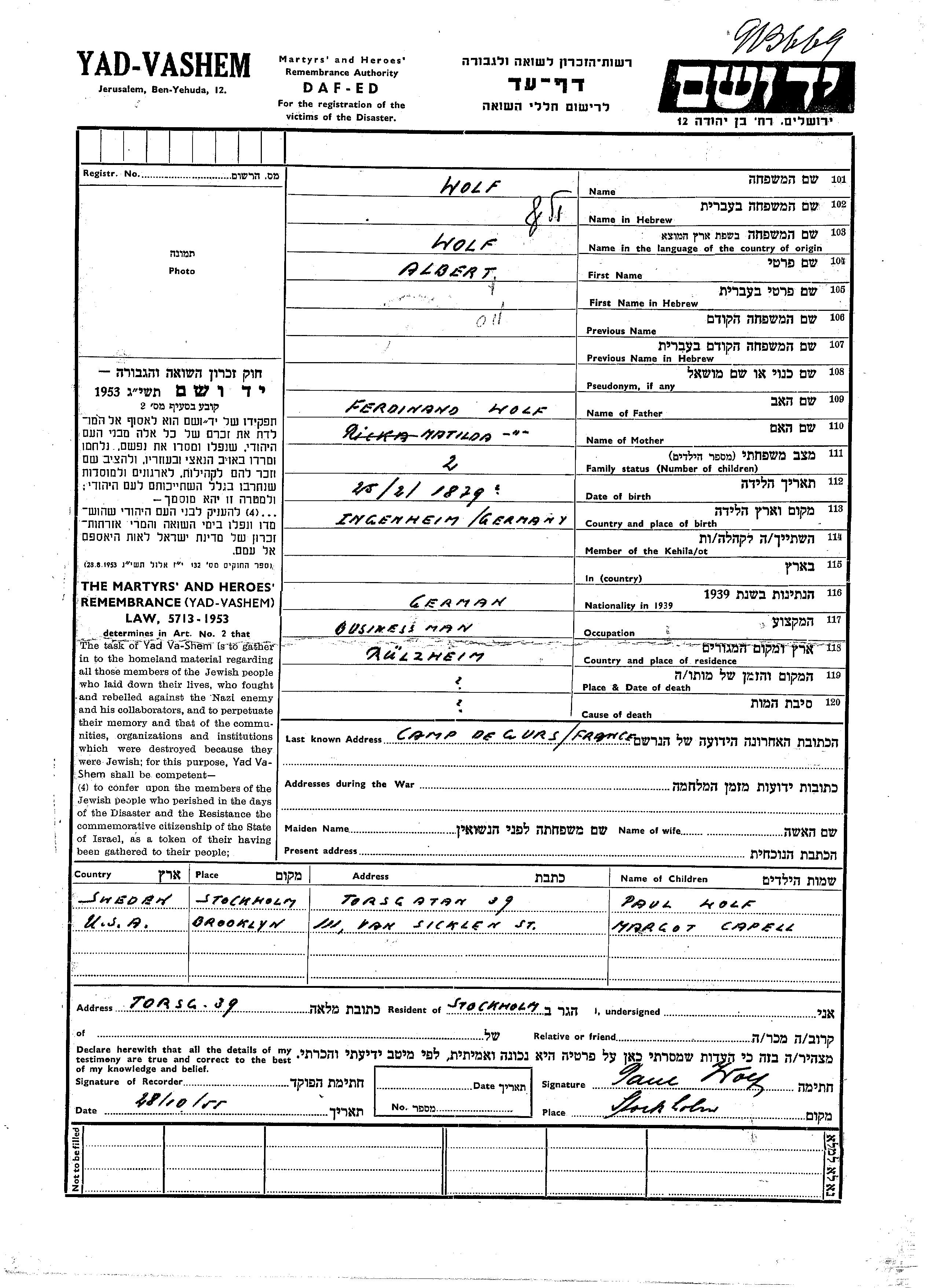 Yad Vashem - Pages of Testimony Names Memorial Collection